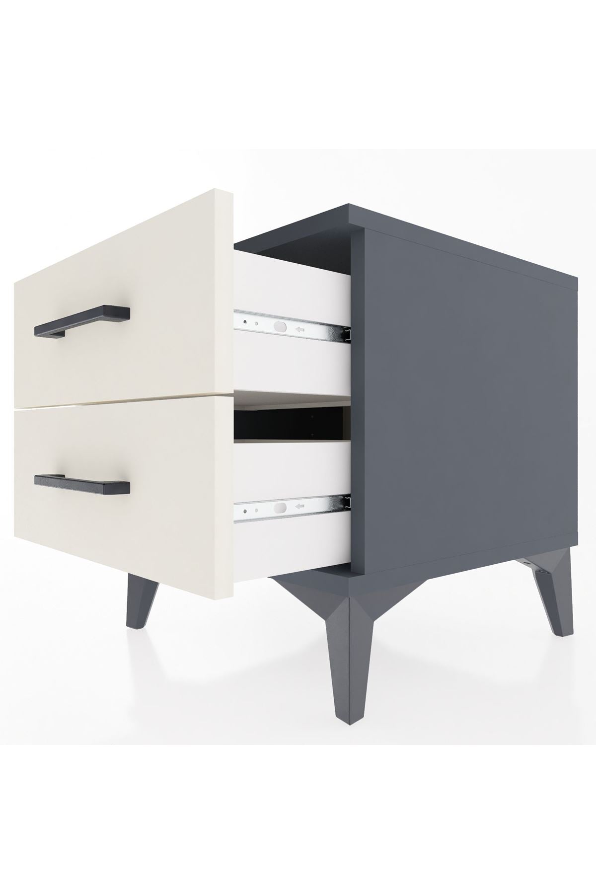 Hyperion Komodin 2 Çekmeceli 44x44x48 Antrasit-Aytaşı – Şık ve Fonksiyonel Depolama