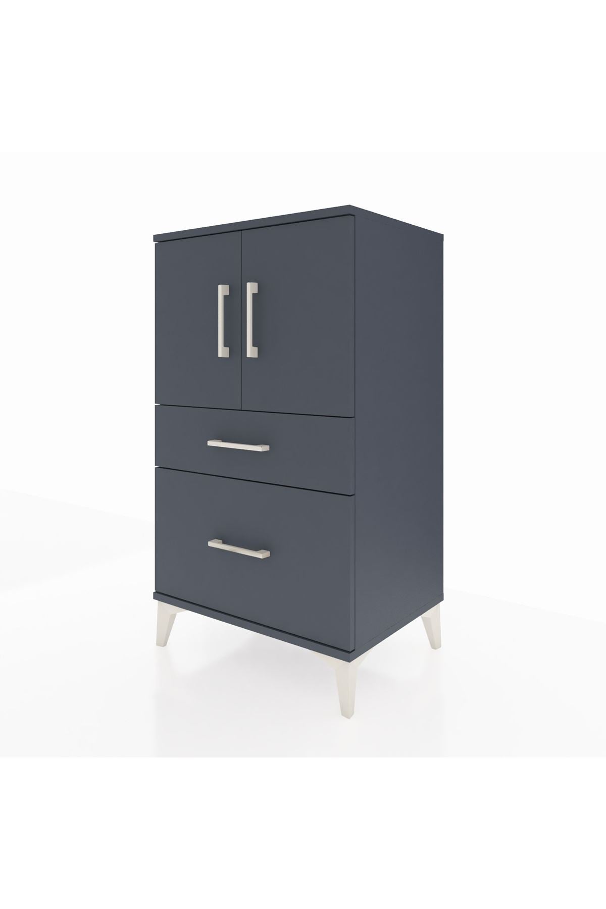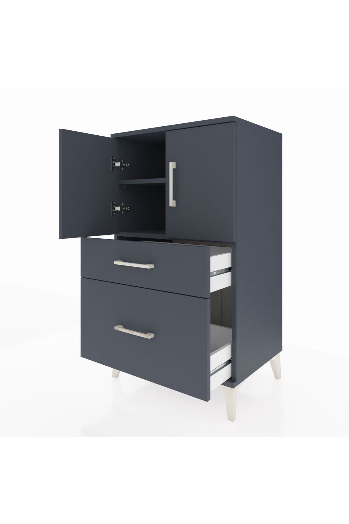 Hyperion Komodin 2 Raflı 2 Çekmeceli 2 Kapaklı 60x44x106 Antrasit-Antrasit