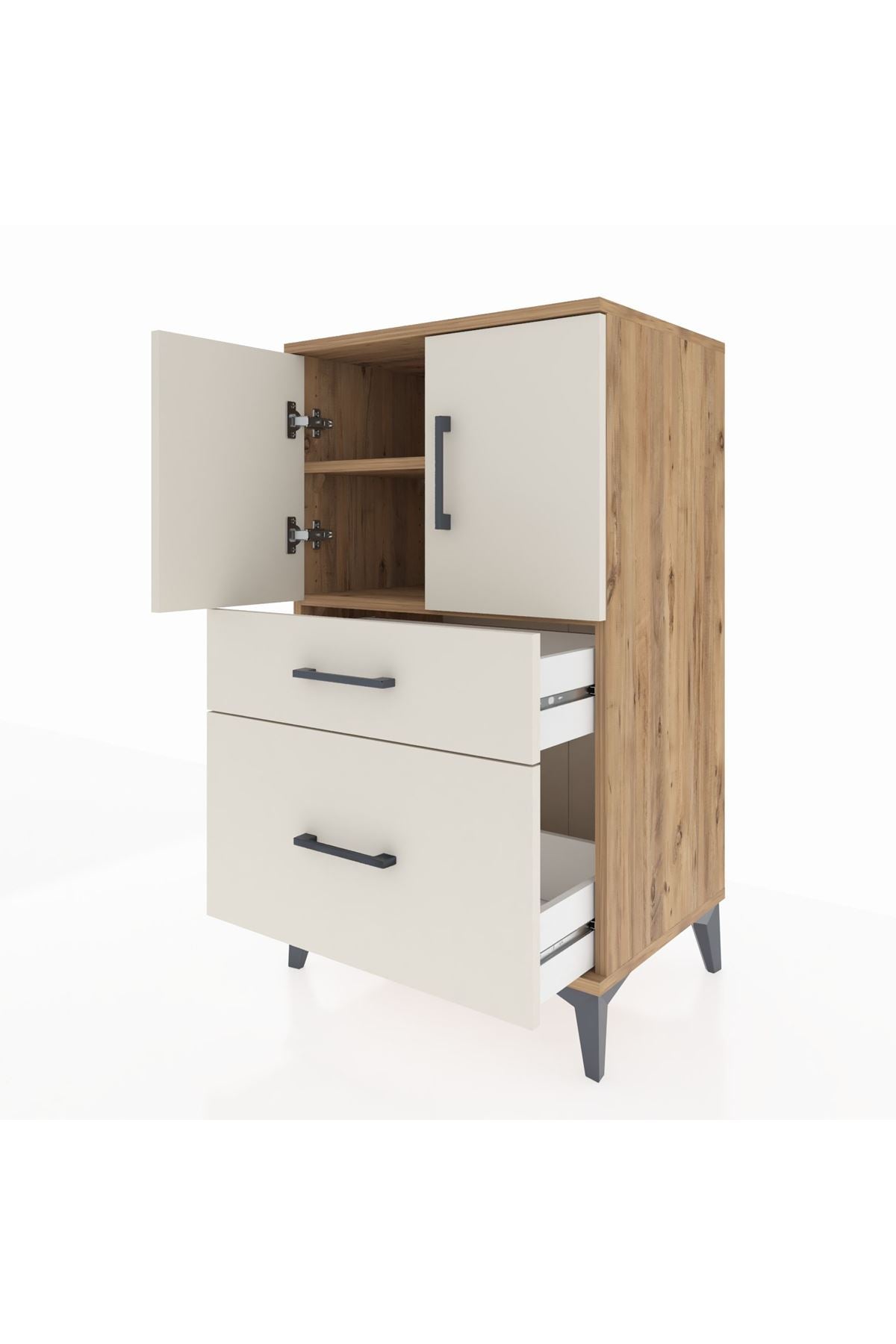 Hyperion Komodin 2 Raflı 2 Çekmeceli 2 Kapaklı 60x44x106 Çam-Aytaşı