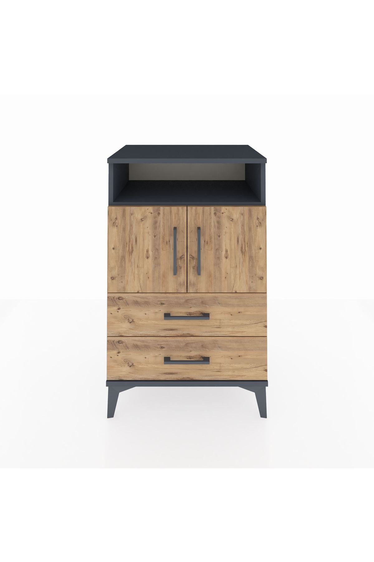Hyperion Komodin 2 Raflı 2 Çekmeceli 2 Kapaklı 60x44x96 Antrasit-Çam