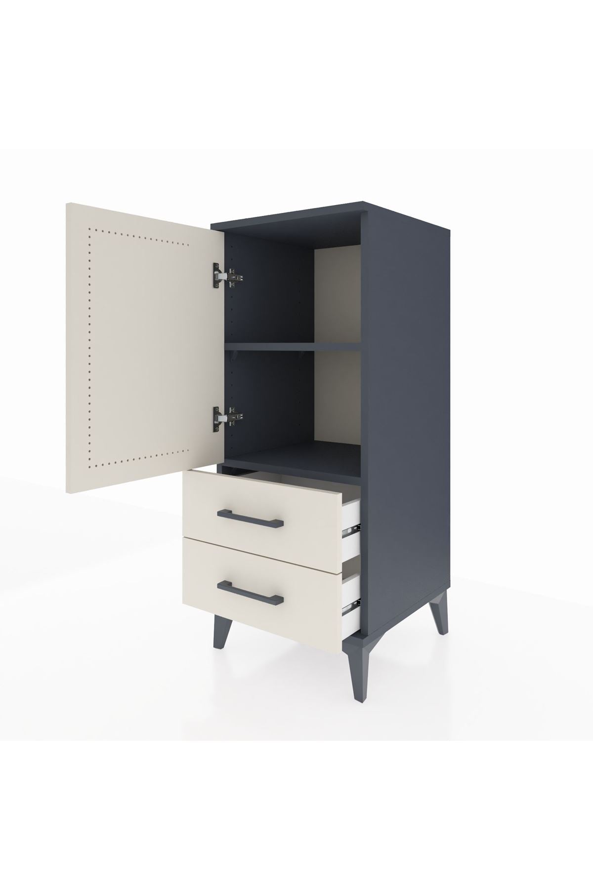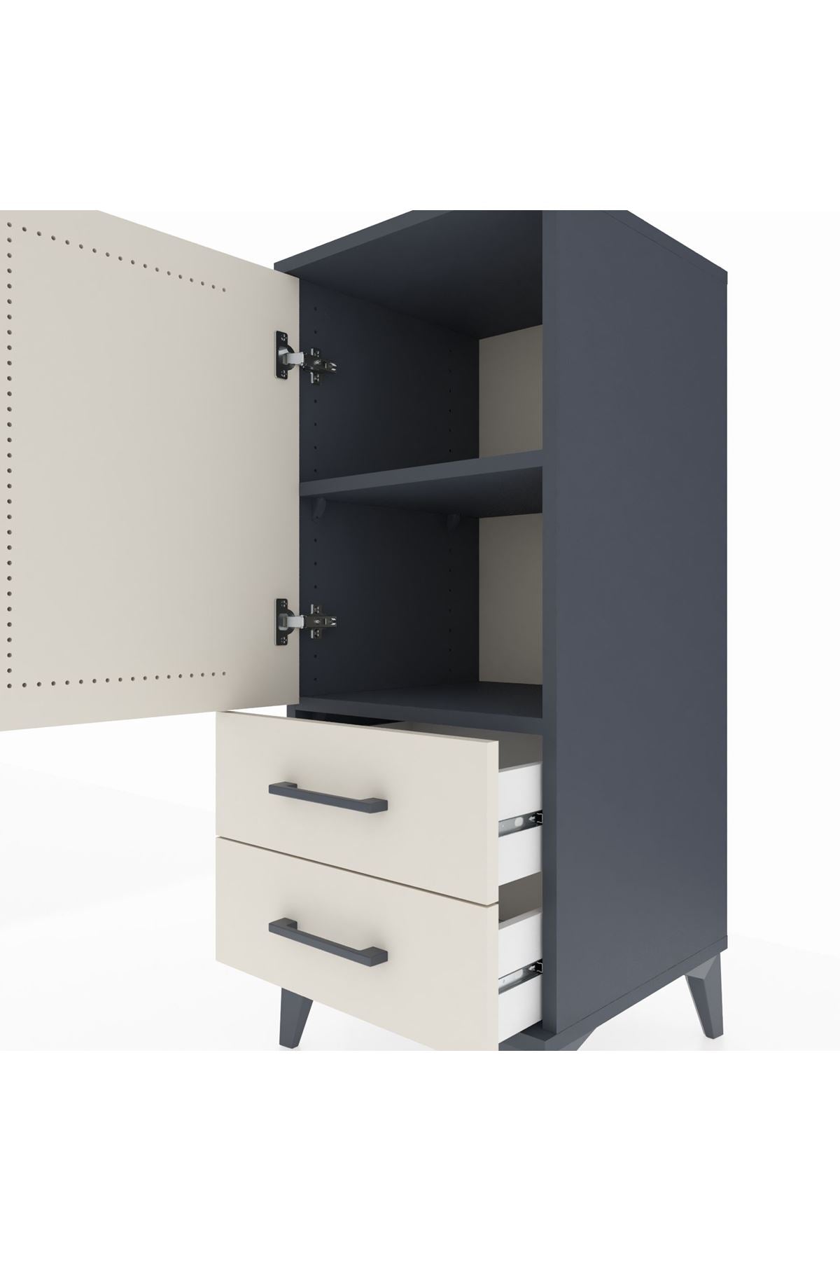 Hyperion Komodin 2 Raflı 2 Çekmeceli Tek Kapaklı 44x44x106 Antrasit-Aytaşı