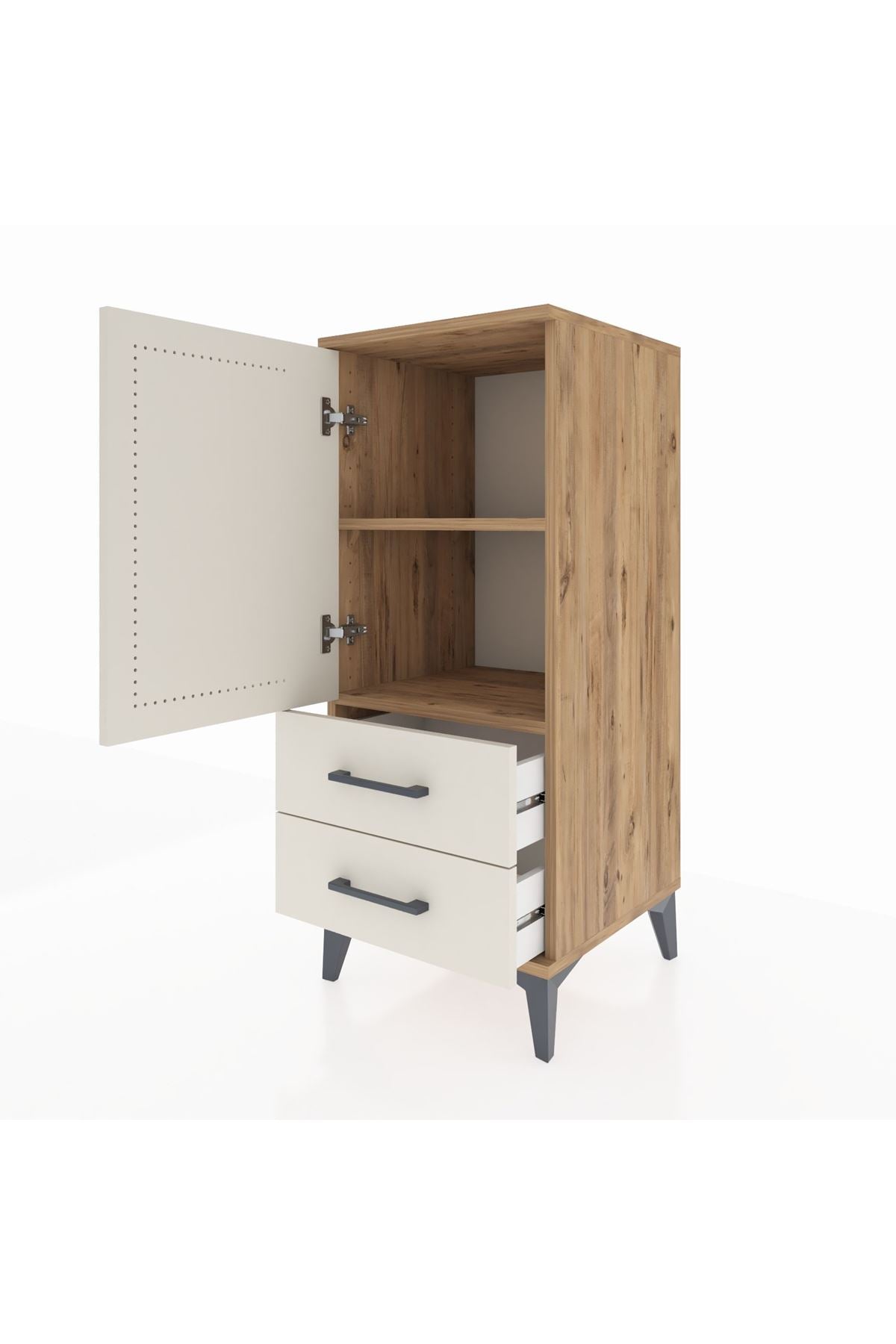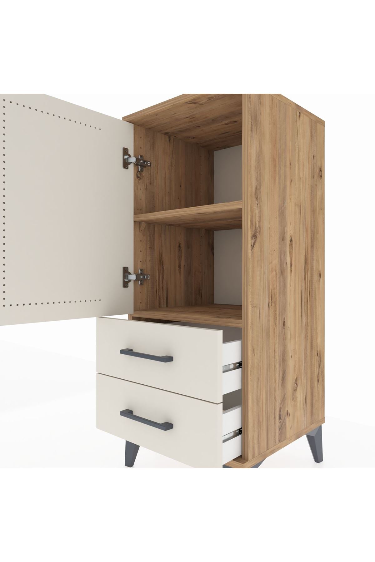 Hyperion Komodin 2 Raflı 2 Çekmeceli Tek Kapaklı 44x44x106 Çam-Aytaşı