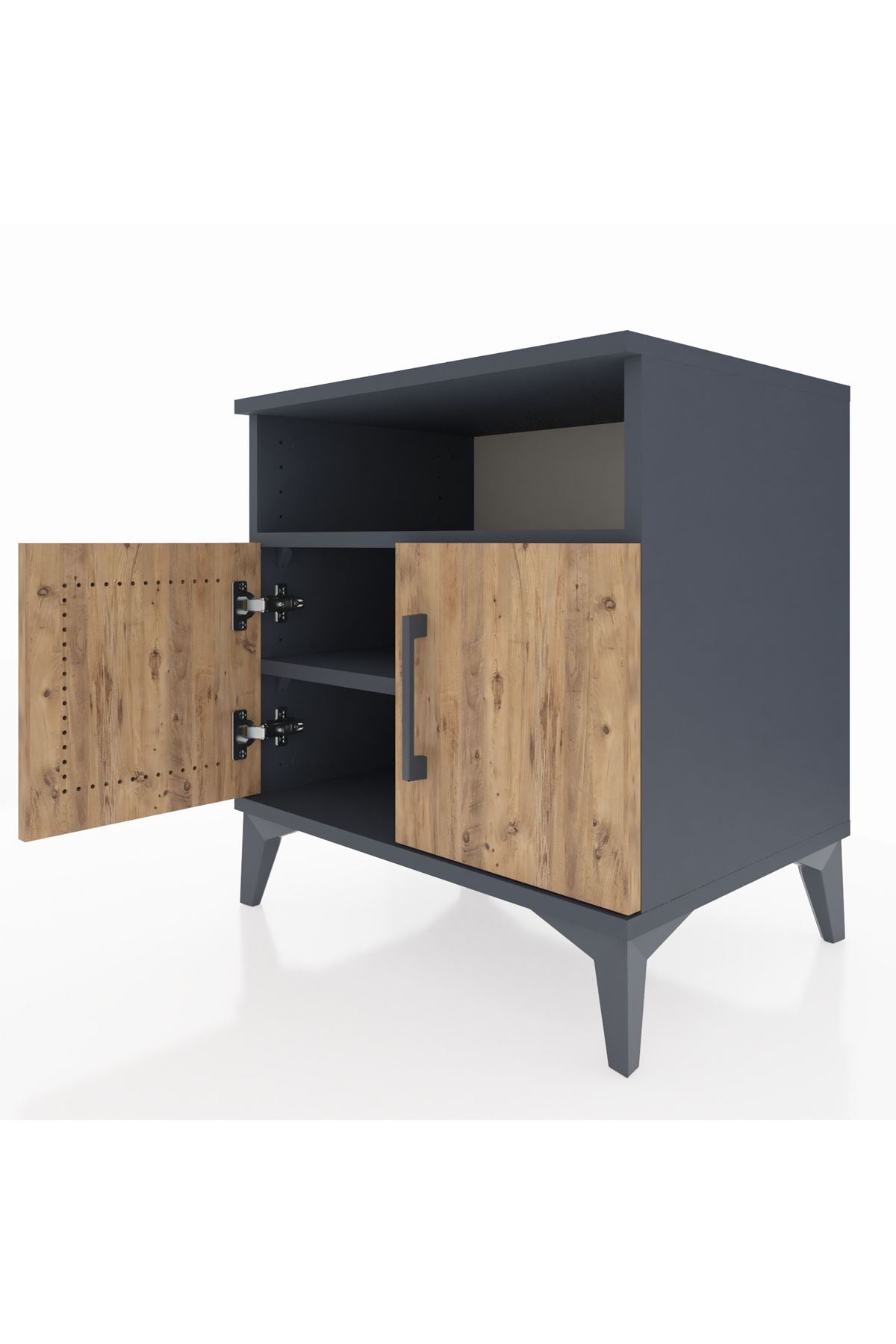 Hyperion Komodin 2 Raflı 2 Kapaklı 60x44x64 Antrasit-Çam