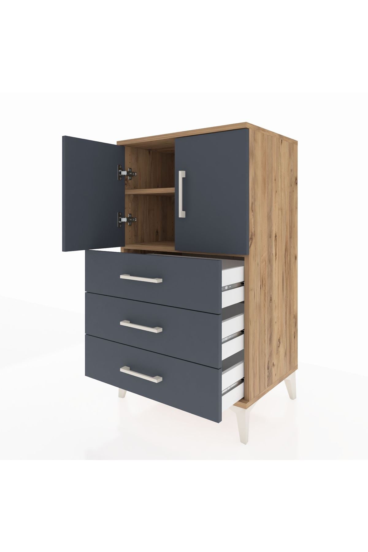Hyperion Komodin 2 Raflı 3 Çekmeceli 2 Kapaklı 60x44x106 Çam-Antrasit