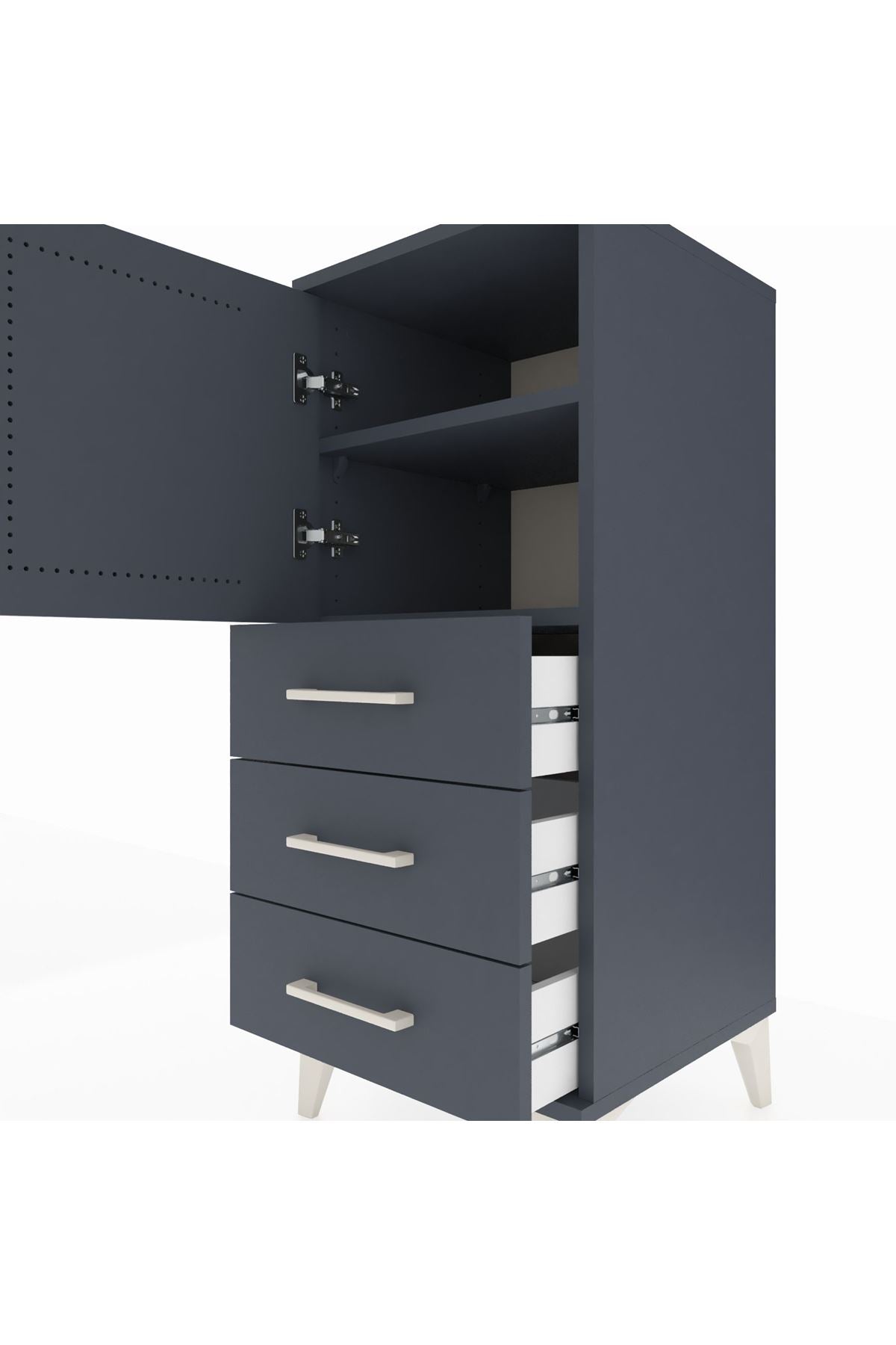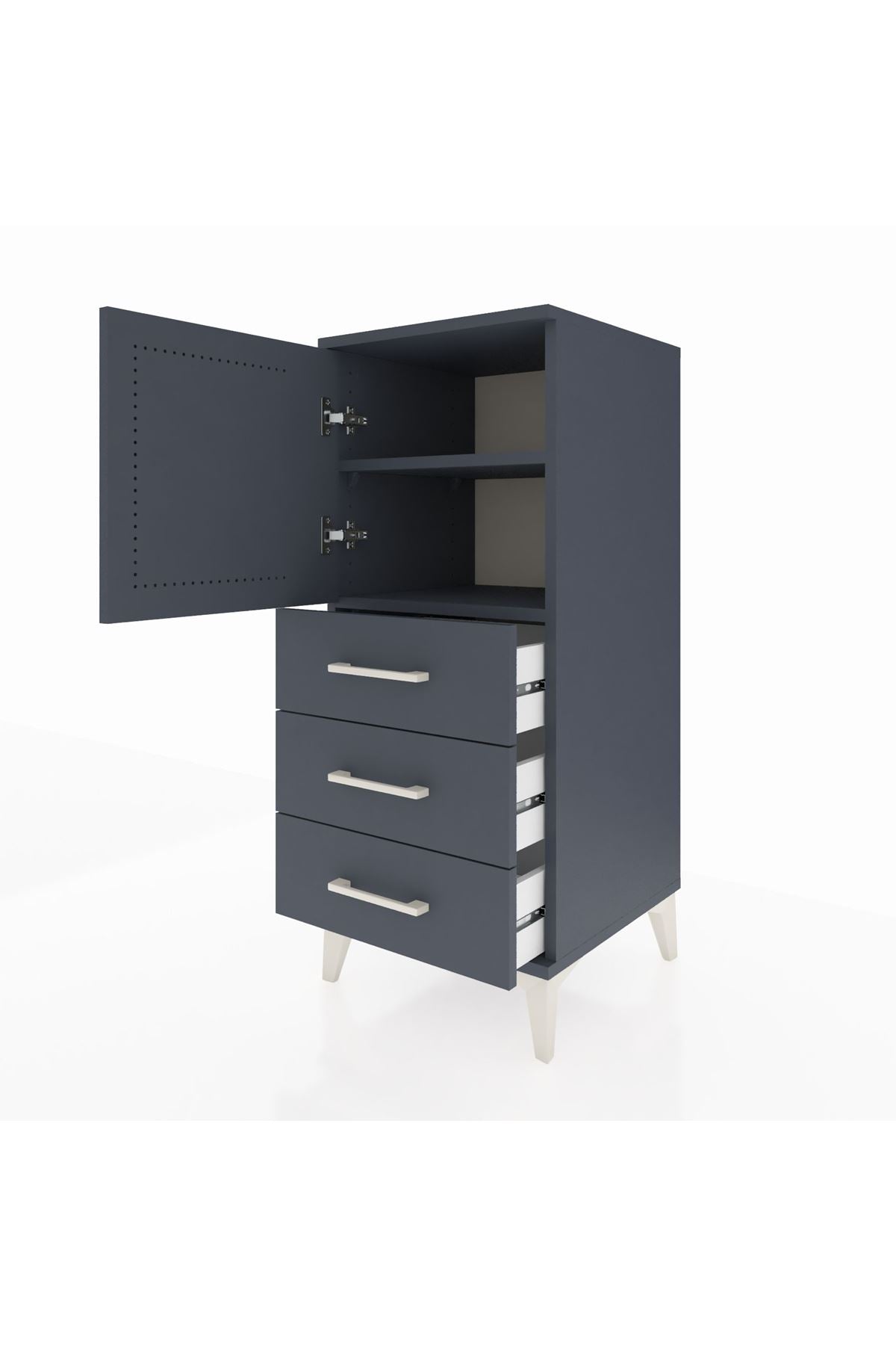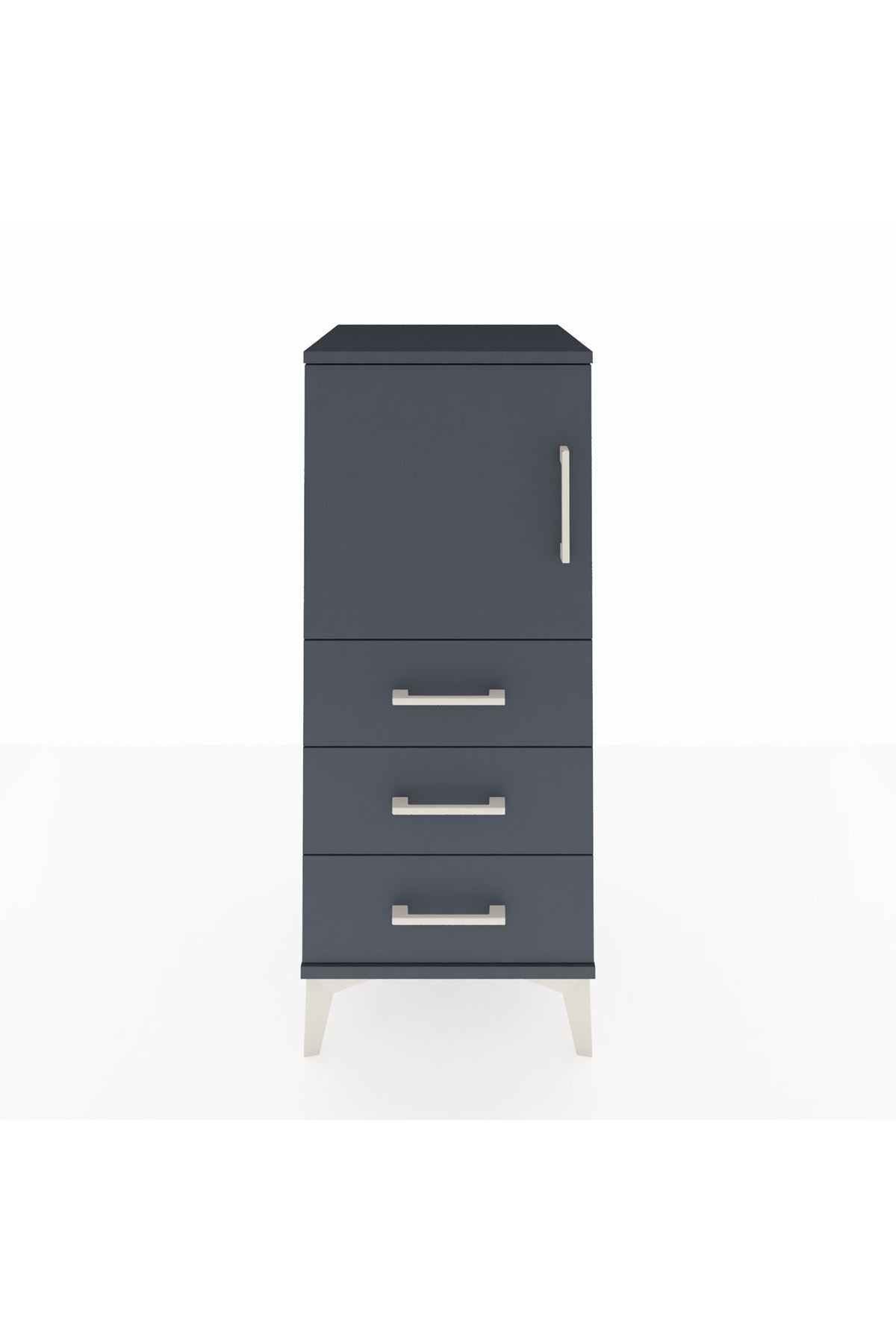 Hyperion Komodin 2 Raflı 3 Çekmeceli Tek Kapaklı 44x44x106 Antrasit-Antrasit