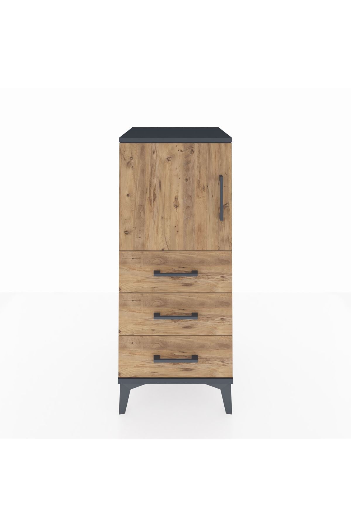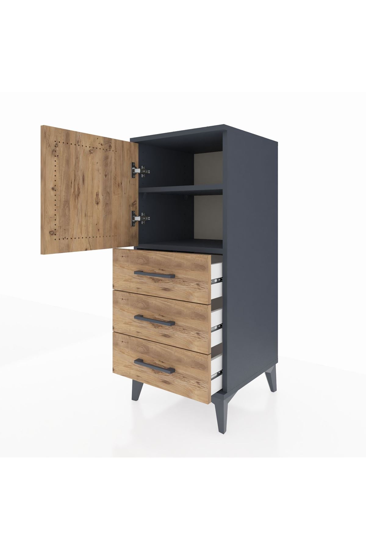 Hyperion Komodin 2 Raflı 3 Çekmeceli Tek Kapaklı 44x44x106 Antrasit-Çam