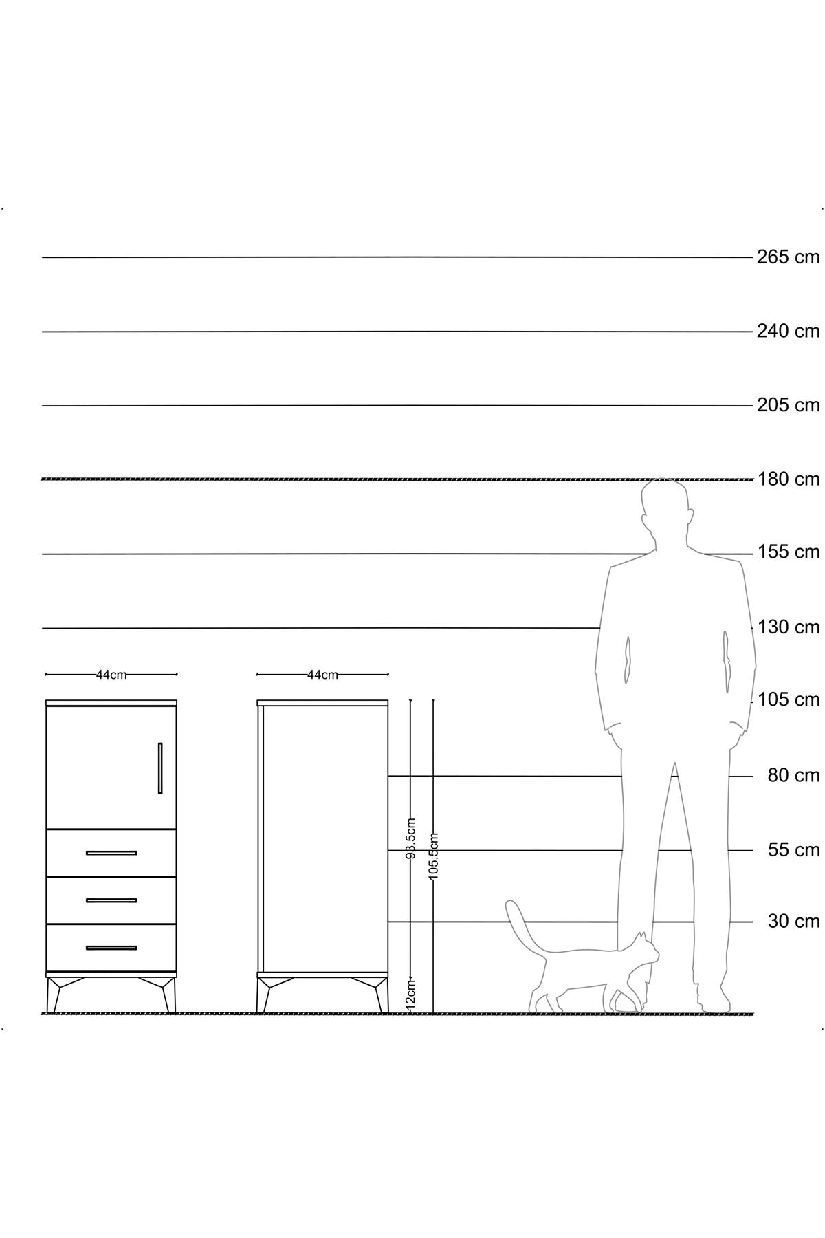 Hyperion Komodin 2 Raflı 3 Çekmeceli Tek Kapaklı 44x44x106 Aytaşı-Antrasit