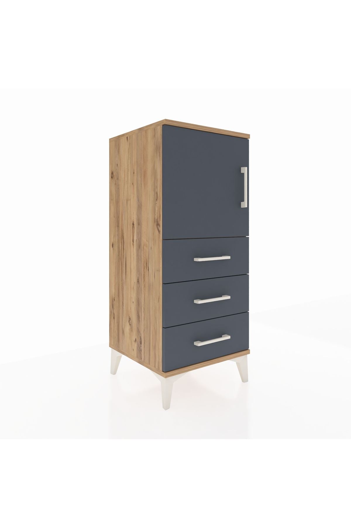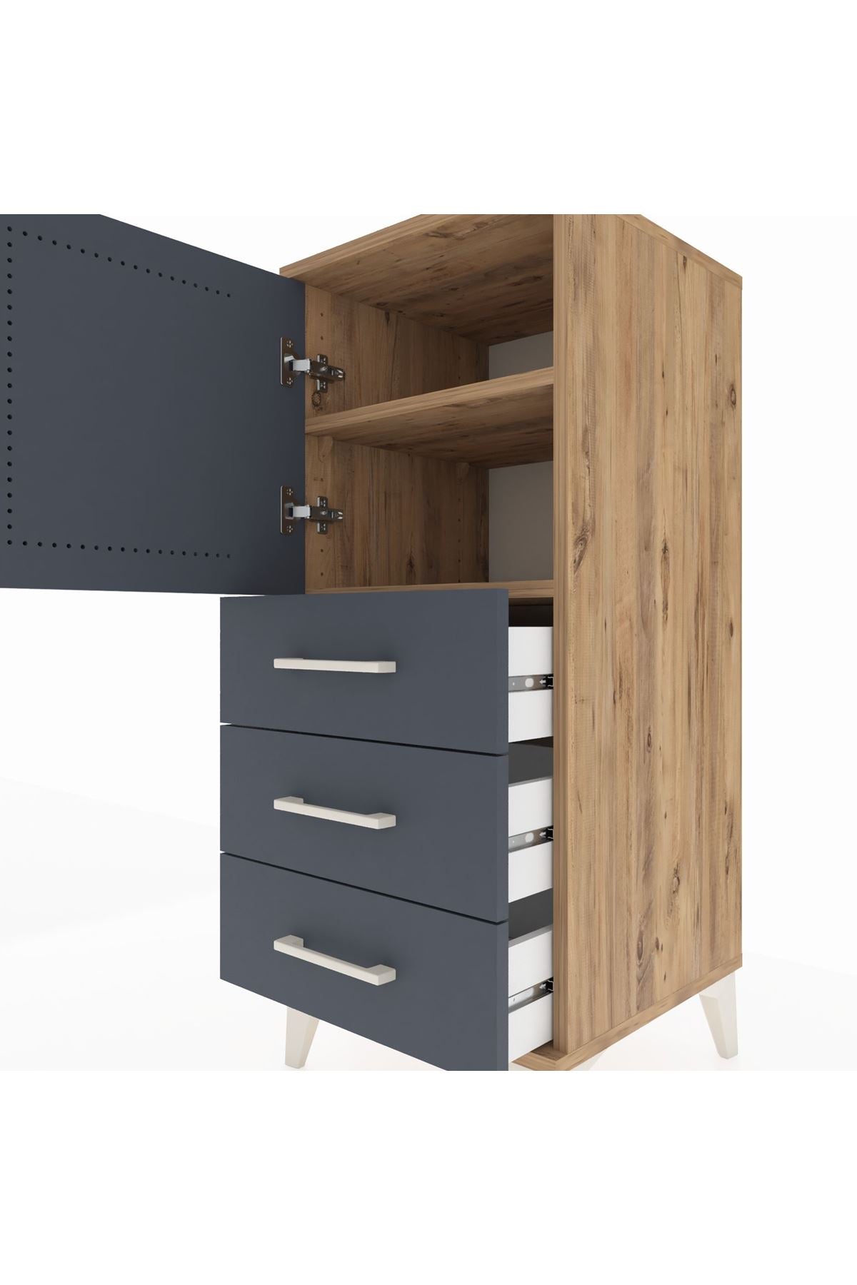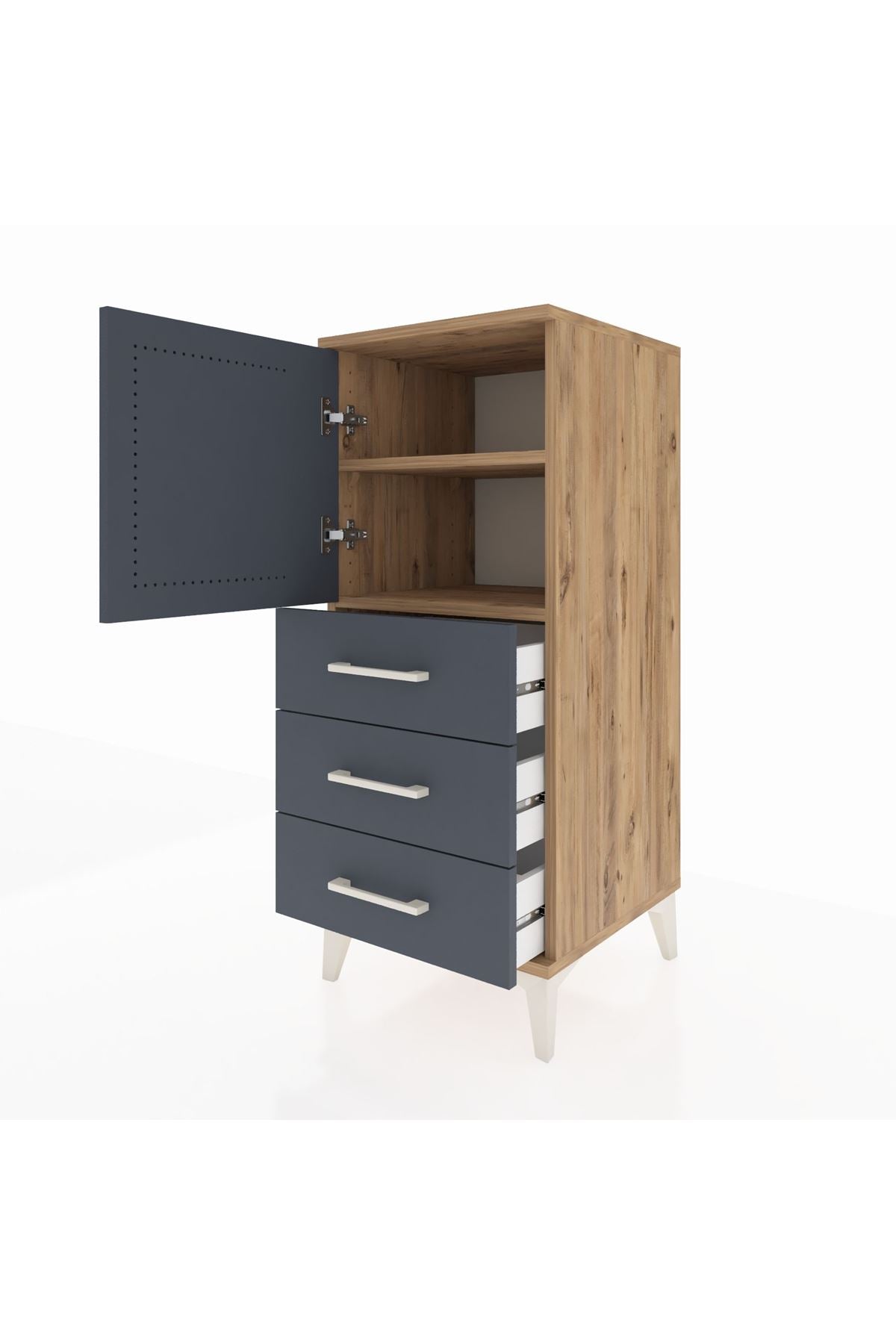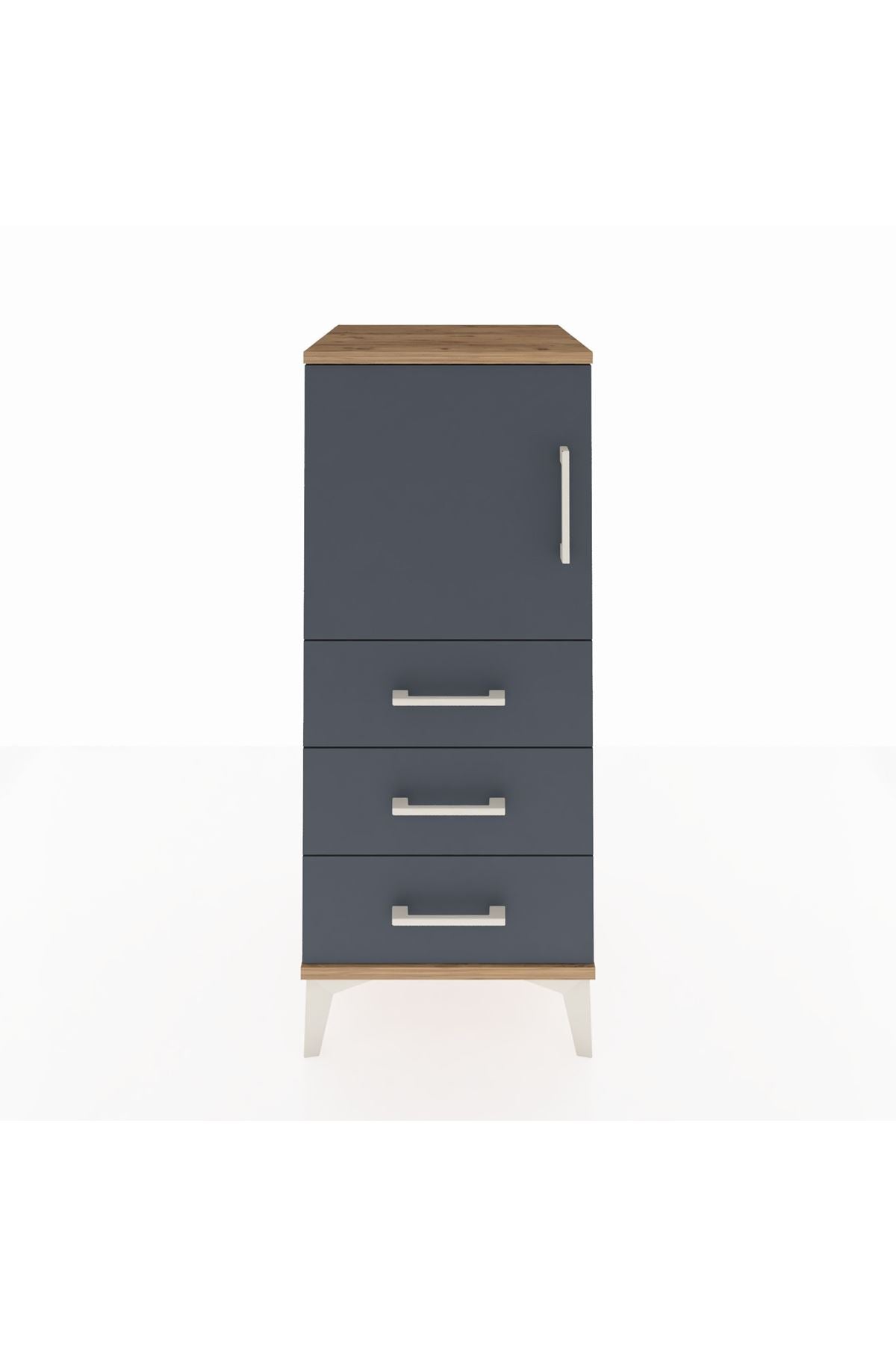 Hyperion Komodin 2 Raflı 3 Çekmeceli Tek Kapaklı 44x44x106 Çam-Antrasit