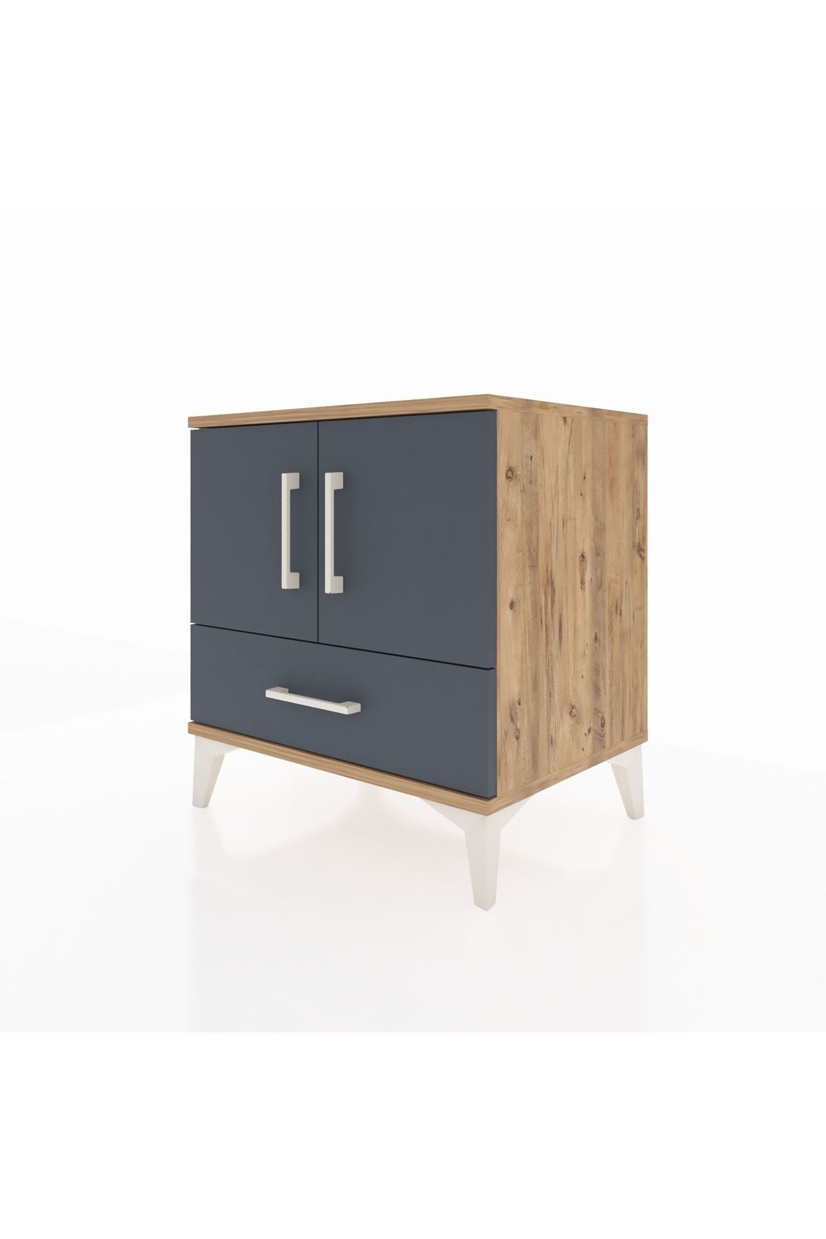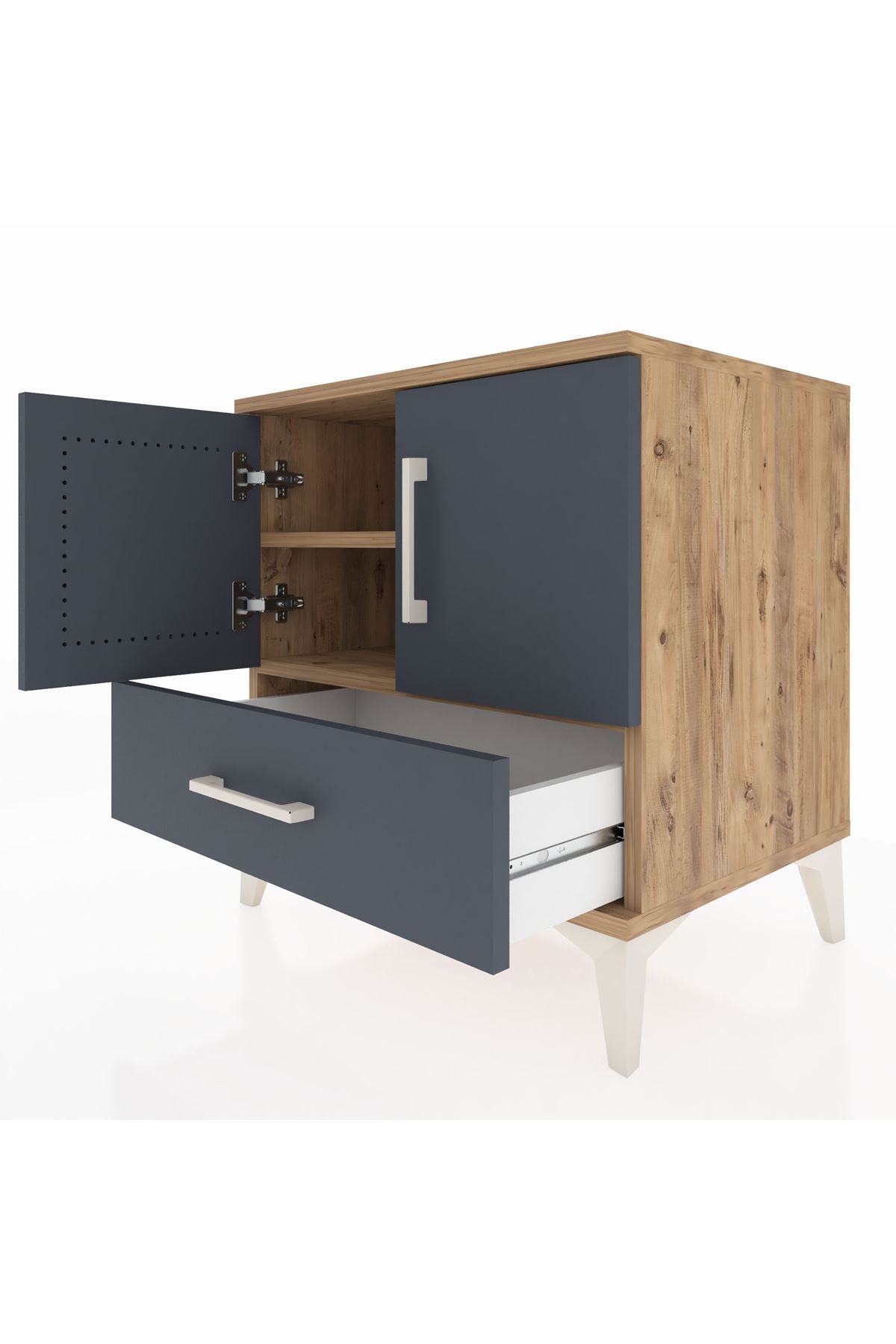 Hyperion Komodin 2 Raflı Tek Çekmeceli 2 Kapaklı 60x44x64 Çam-Antrasit