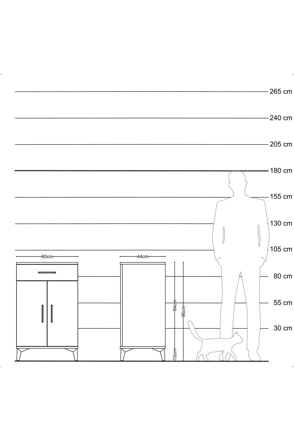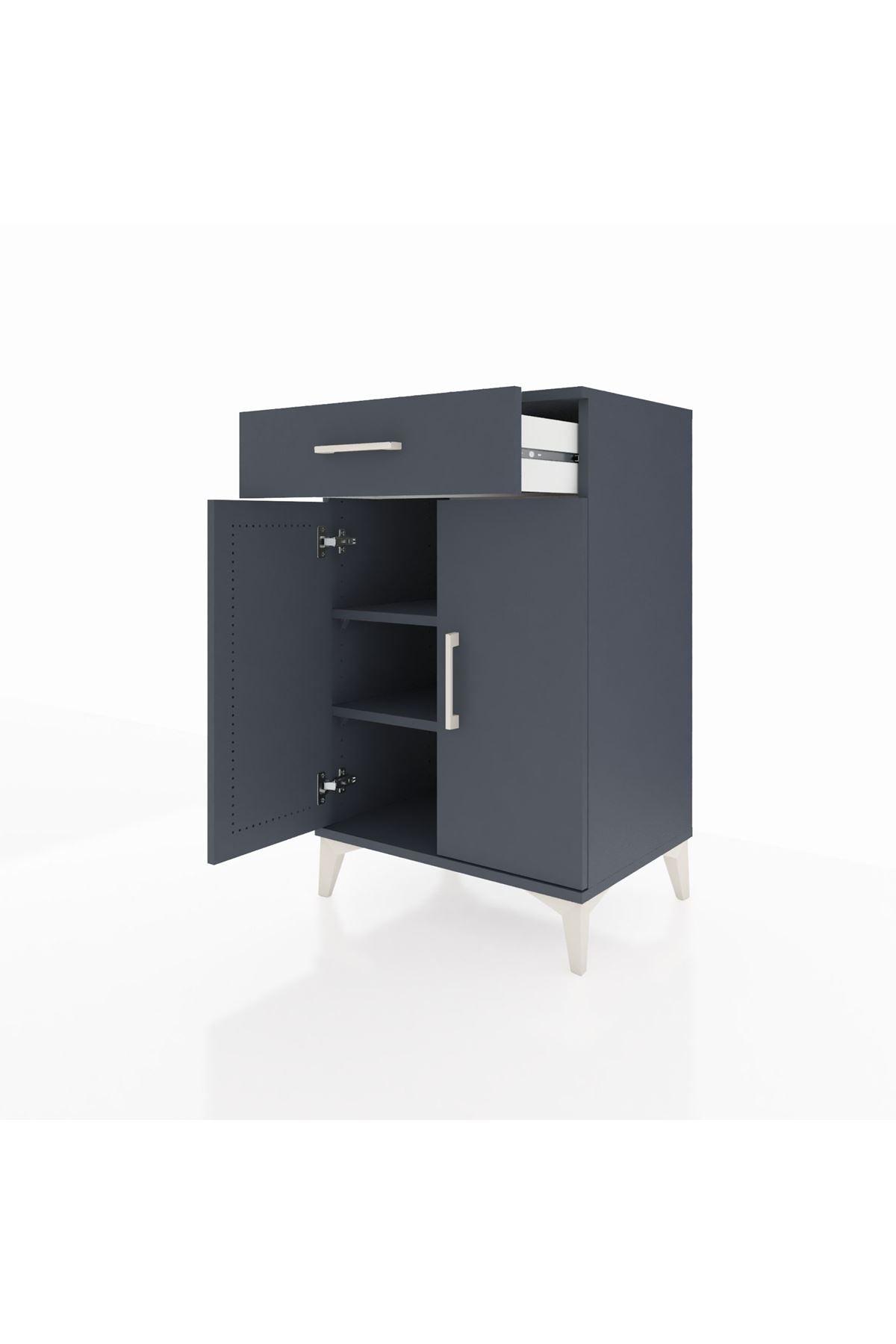 Hyperion Komodin 2 Raflı Tek Çekmeceli 2 Kapaklı 60x44x96 Antrasit-Antrasit