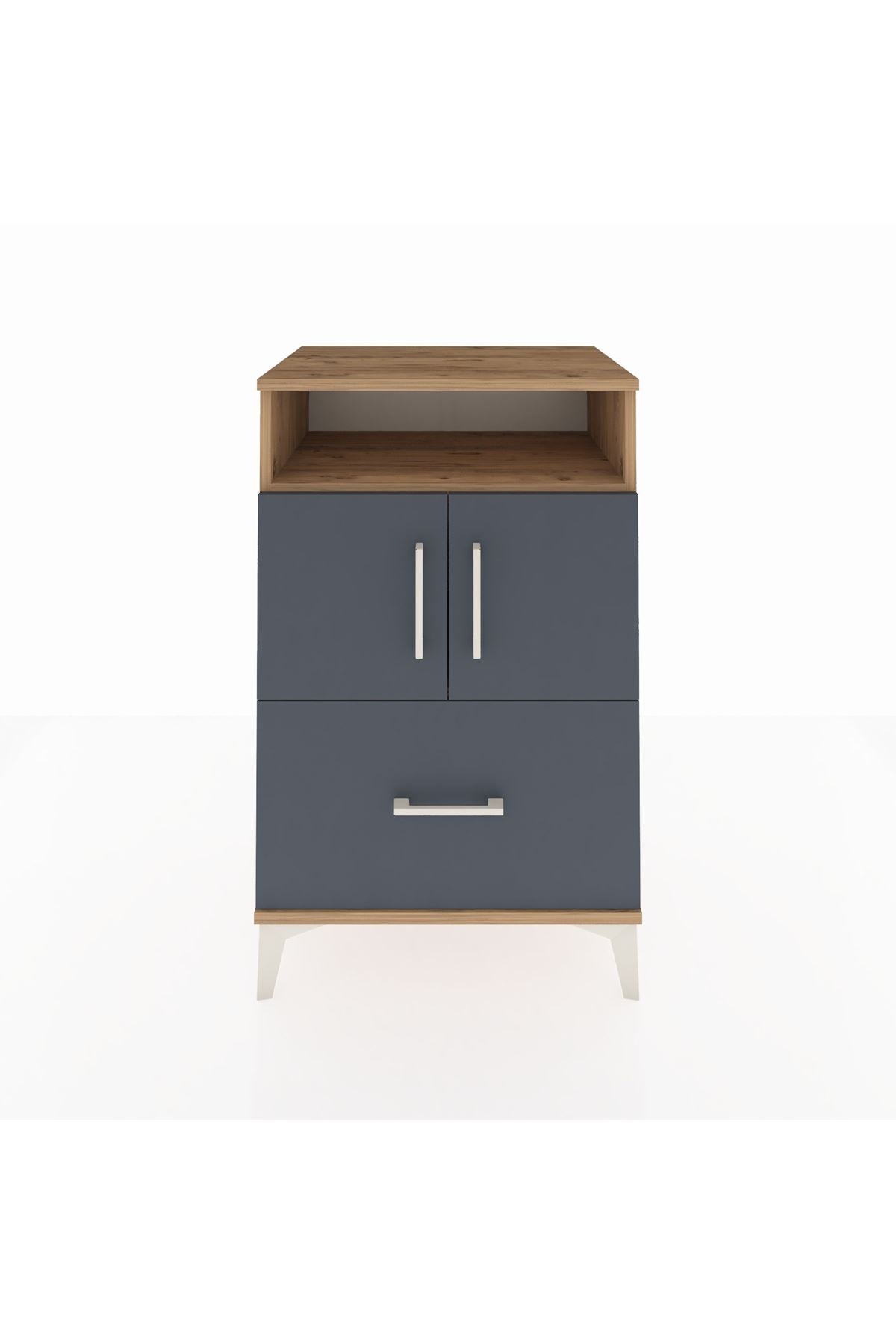 Hyperion Komodin 2 Raflı Tek Çekmeceli 2 Kapaklı 60x44x96 Çam-Antrasit