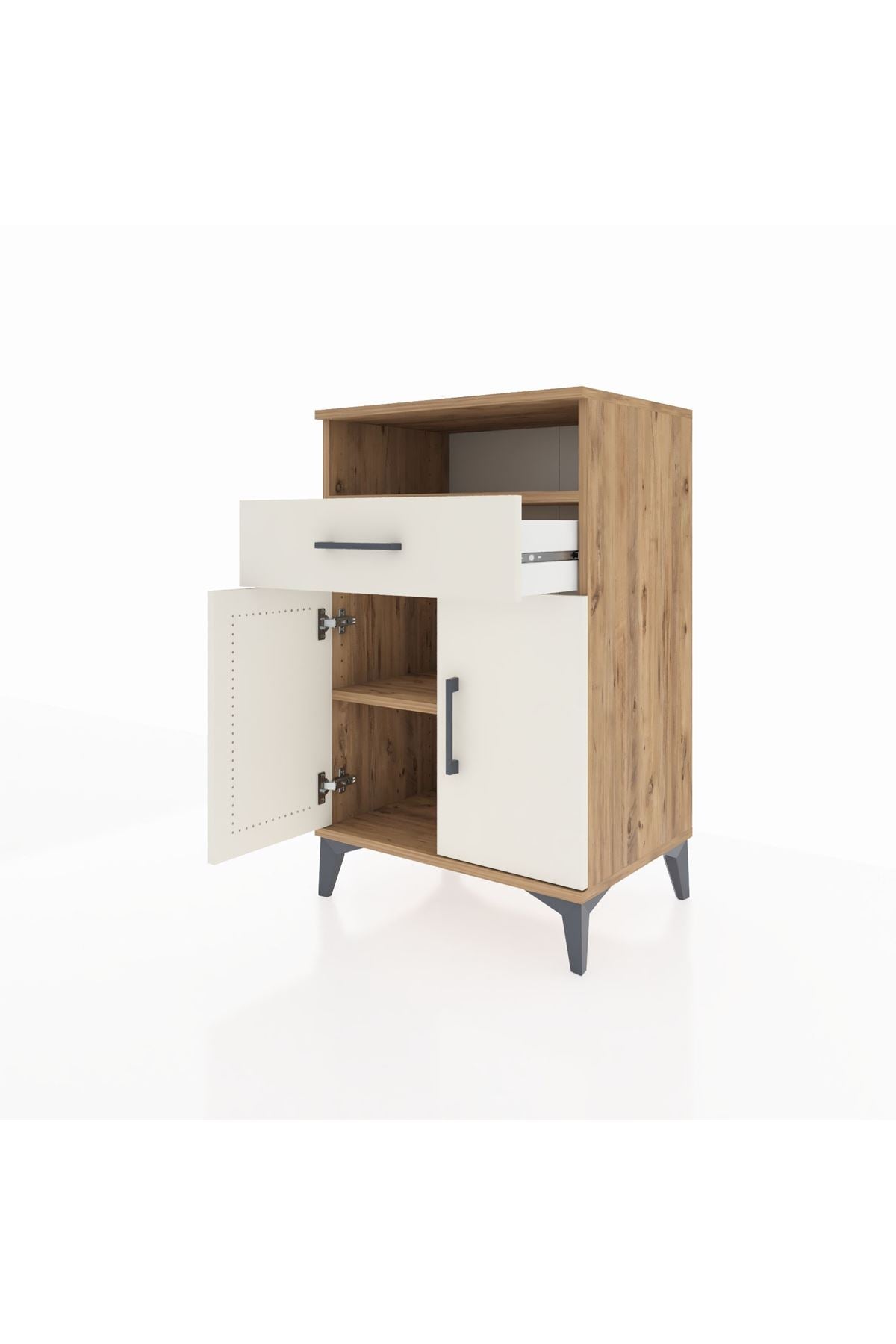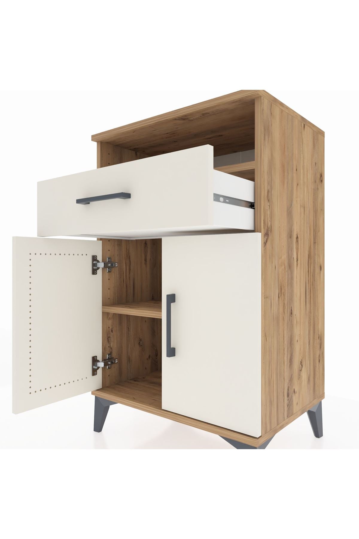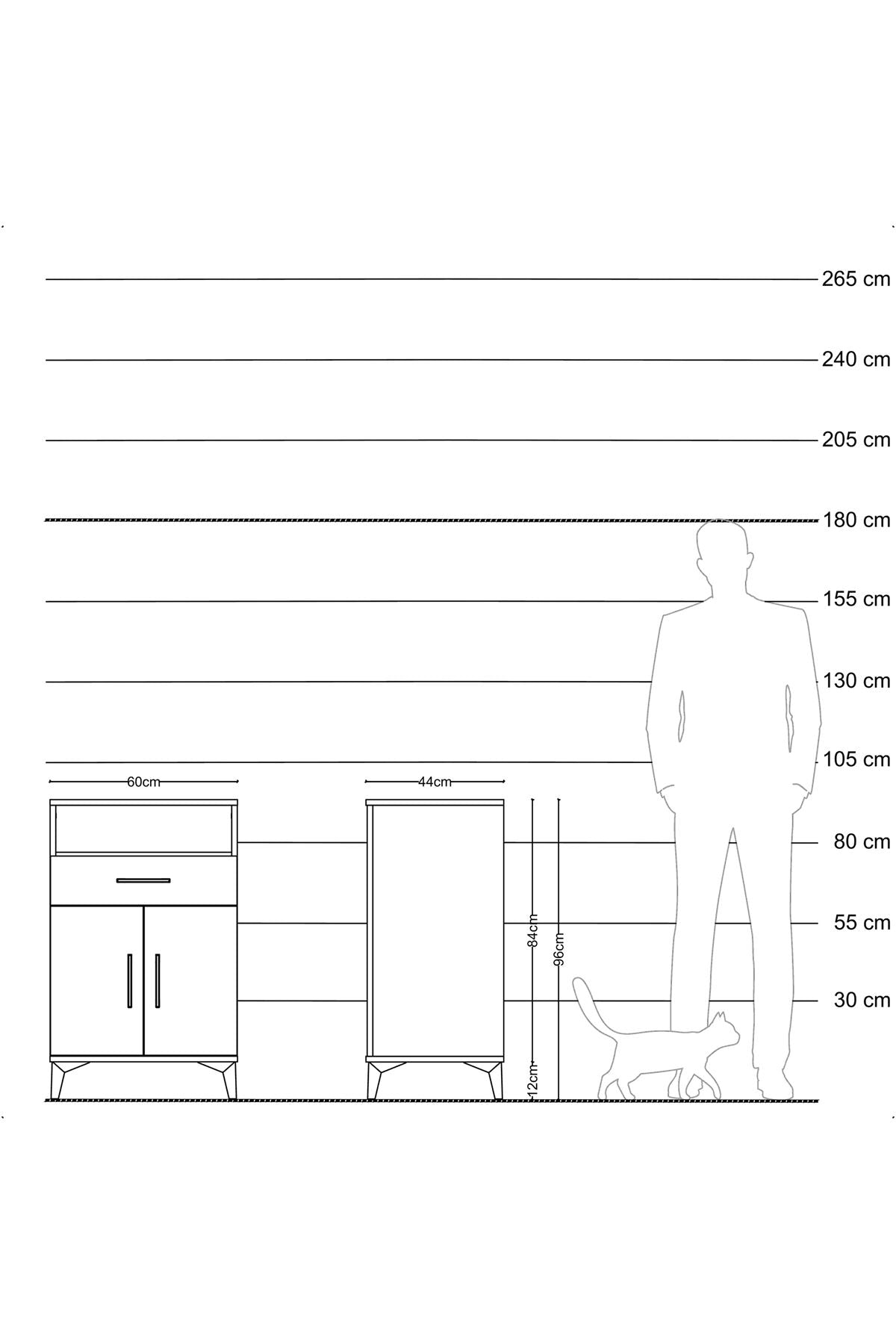 Hyperion Komodin 2 Raflı Tek Çekmeceli 2 Kapaklı 60x44x96 Çam-Aytaşı