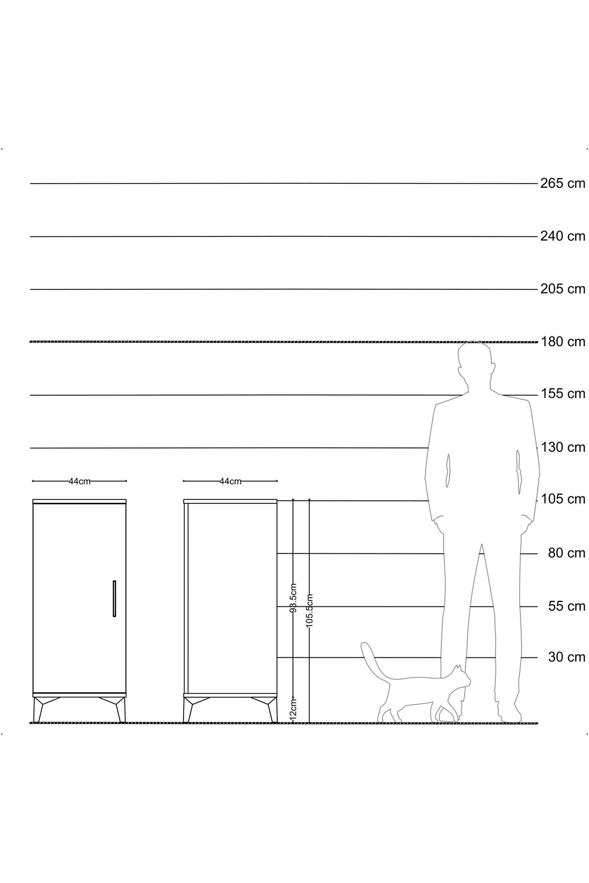 Hyperion Komodin 2 Raflı Tek Kapaklı 44x44x106 Antrasit-Çam