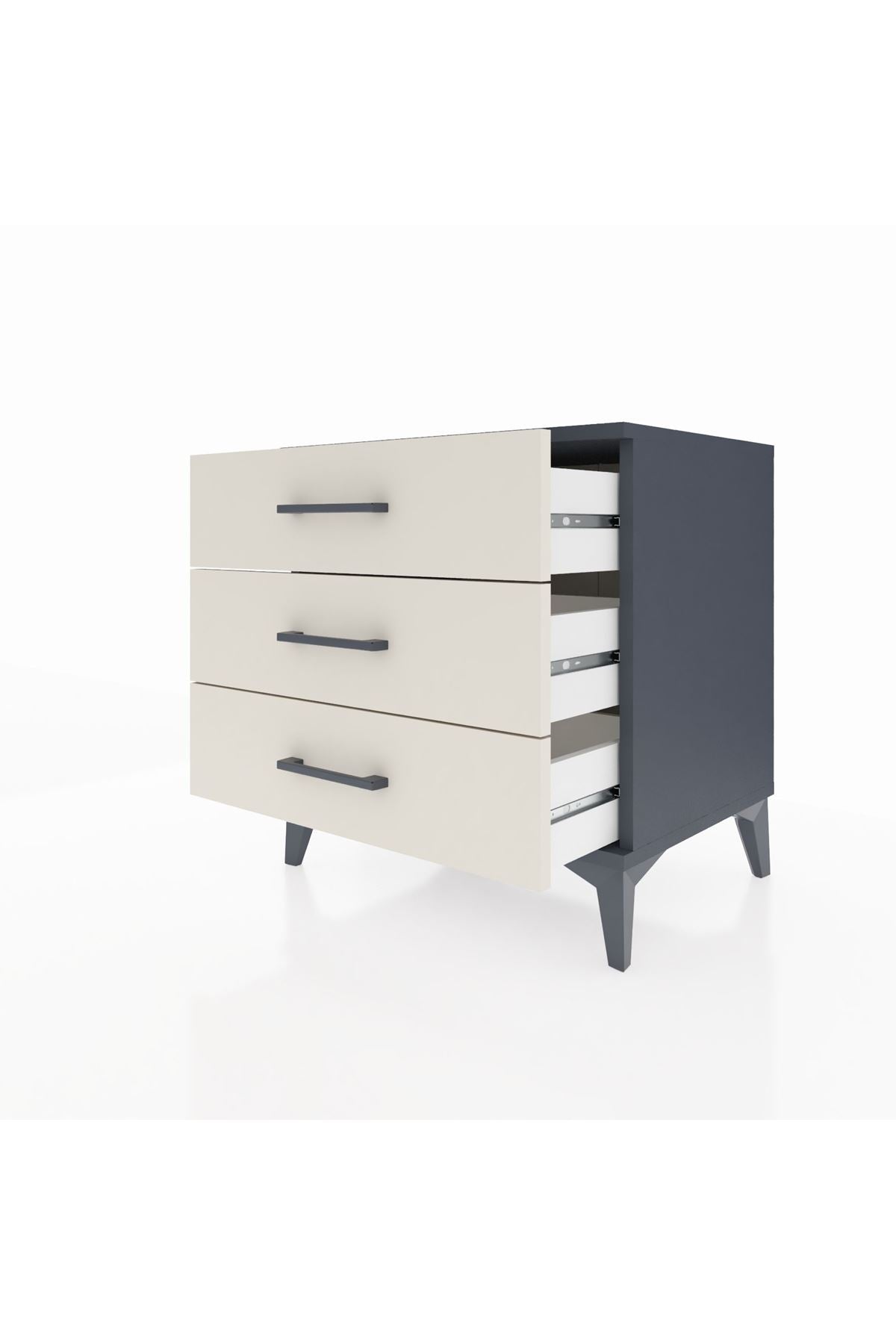 Hyperion Komodin 3 Çekmeceli 60x44x64 Antrasit-Aytaşı