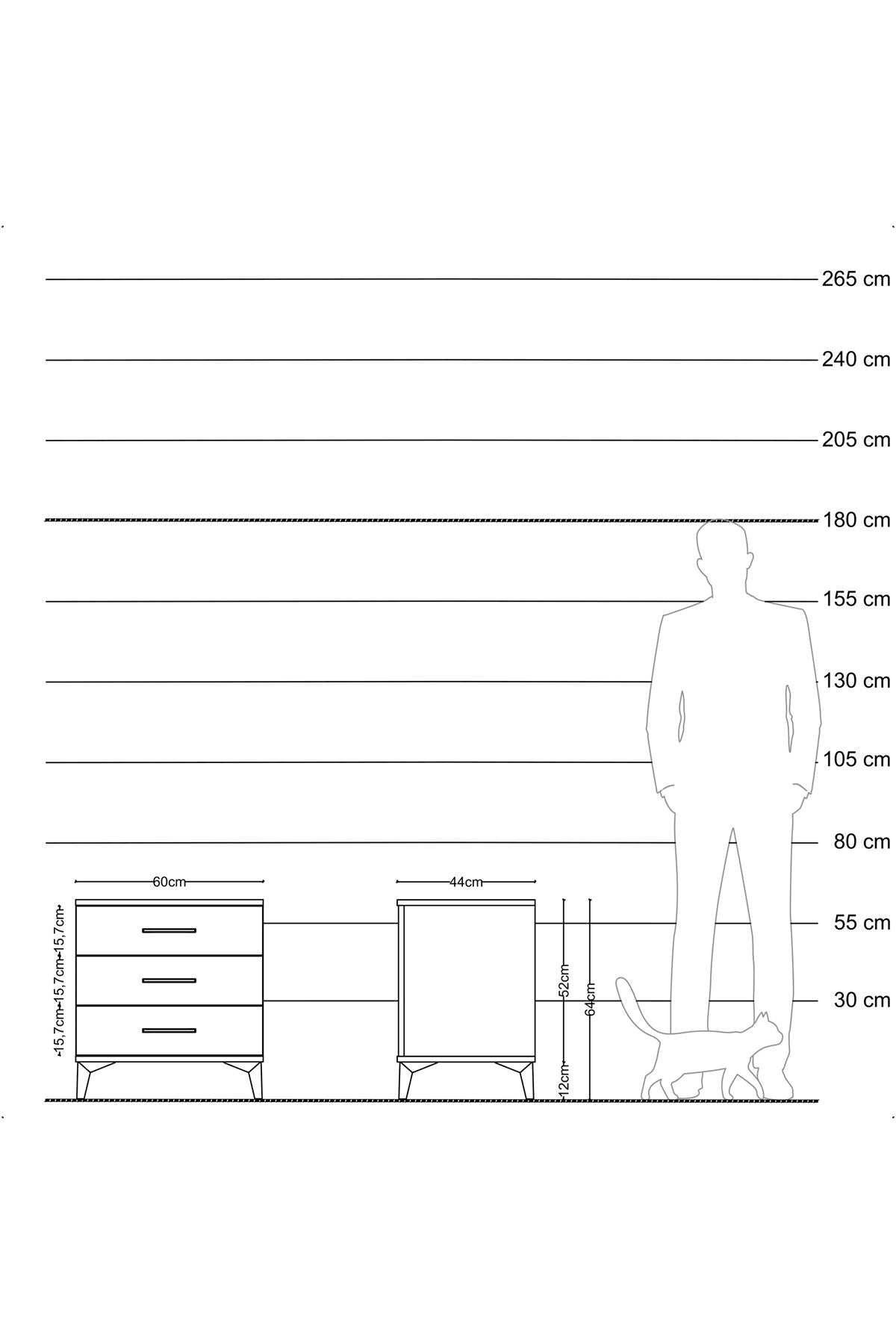 Hyperion Komodin 3 Çekmeceli 60x44x64 Antrasit-Çam