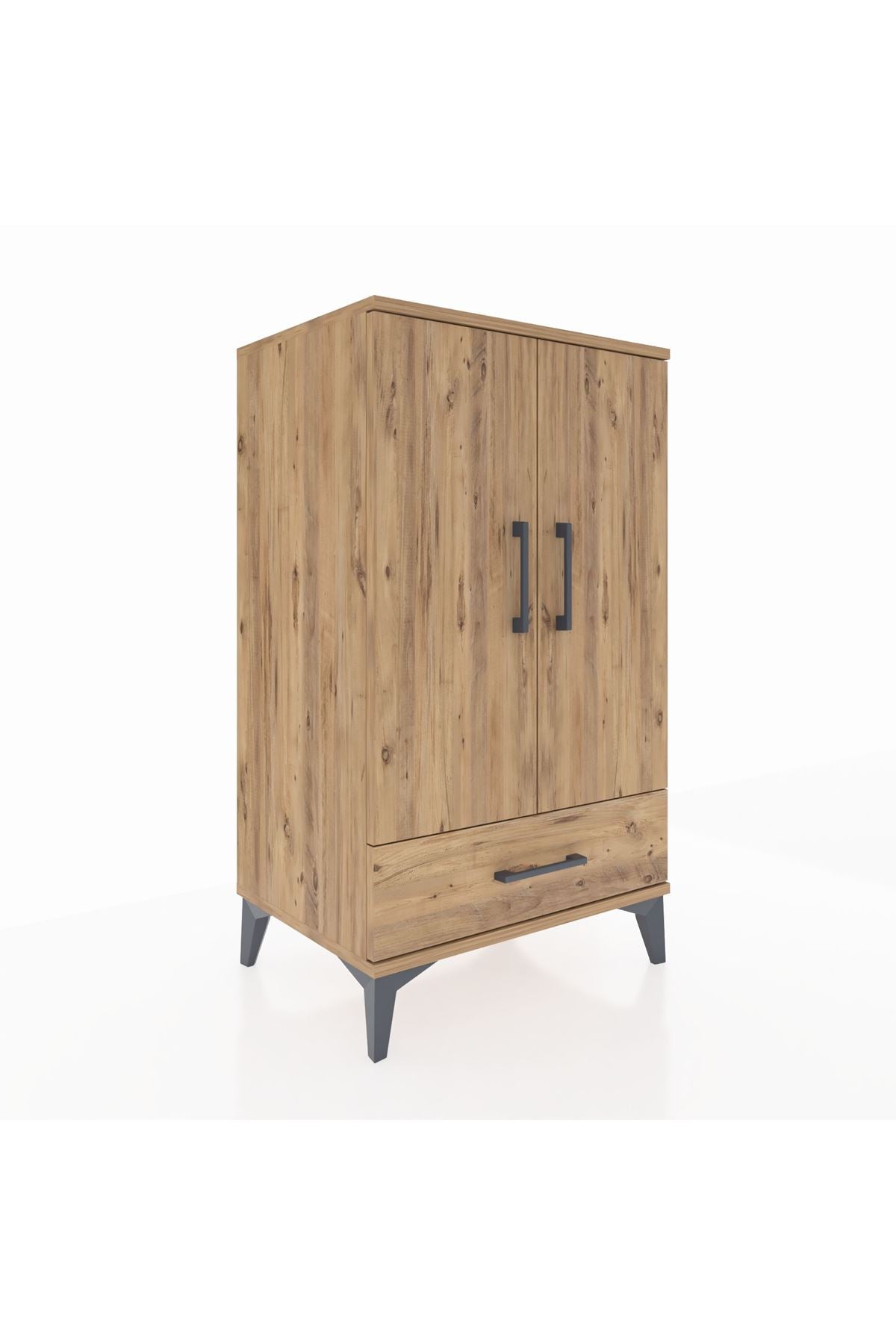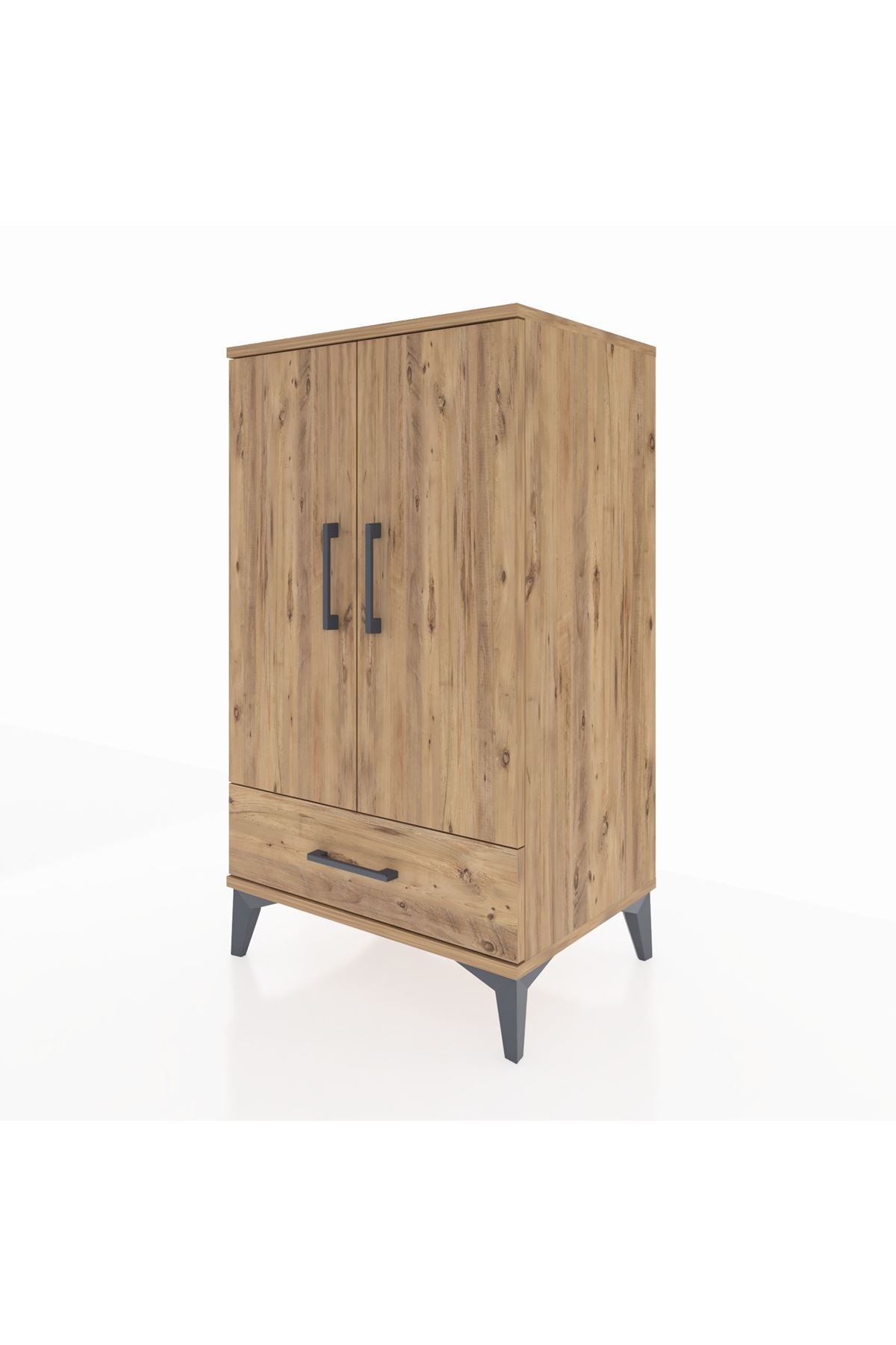 Hyperion Komodin 3 Raflı Tek Çekmeceli 2 Kapaklı 60x44x106 Çam-Çam