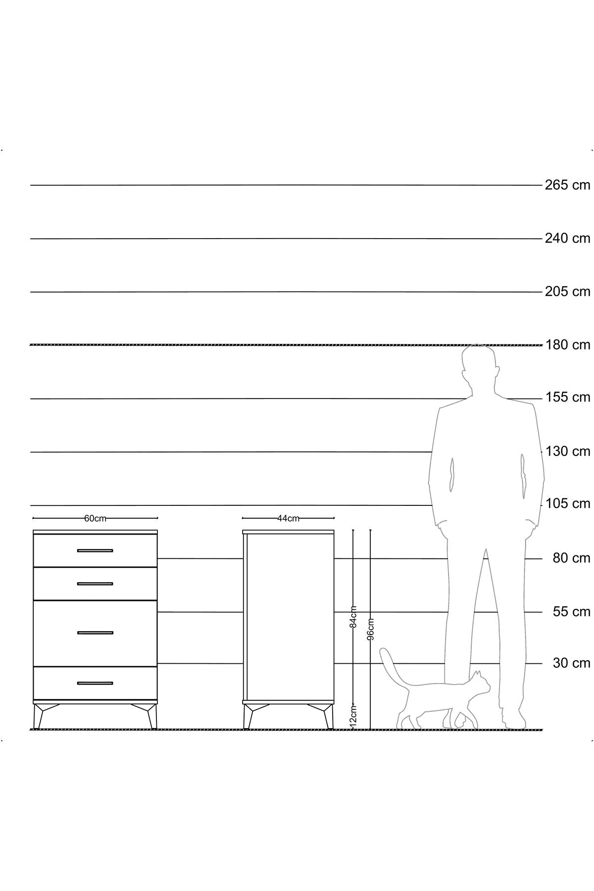 Hyperion Komodin 4 Çekmeceli 60x44x96 Çam-Antrasit