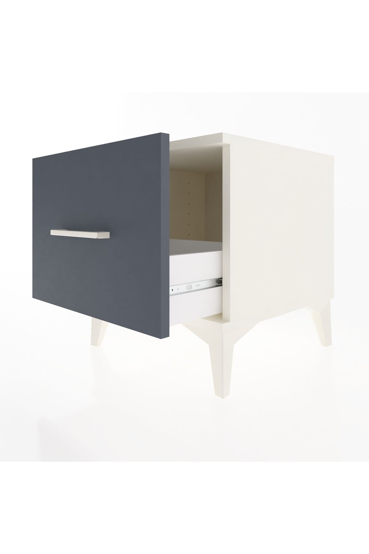 Tek çekmeceli yapısı sayesinde yatak odasında temel ihtiyaçları düzenlemenize yardımcı olur; üst yüzeyine lamba, çalar saat veya dekoratif objeler yerleştirilebilir. Komodinin kompakt ölçüleri dar alanlarda bile pratik saklama çözümleri sunar. Raflar ayarlanabilir özelliği sayesinde iç düzenlemeyi ihtiyaca göre değiştirebilir, çekmece sayısı konfigüre edilebilir seçeneğiyle farklı depolama taleplerine uyum sağlayabilirsiniz. Metal ayaklar zeminden yükselterek temizlik kolaylığı ve hava sirkülasyonu sağlar, metal kulplar ise sık kullanıma karşı dayanıklılık sağlar.