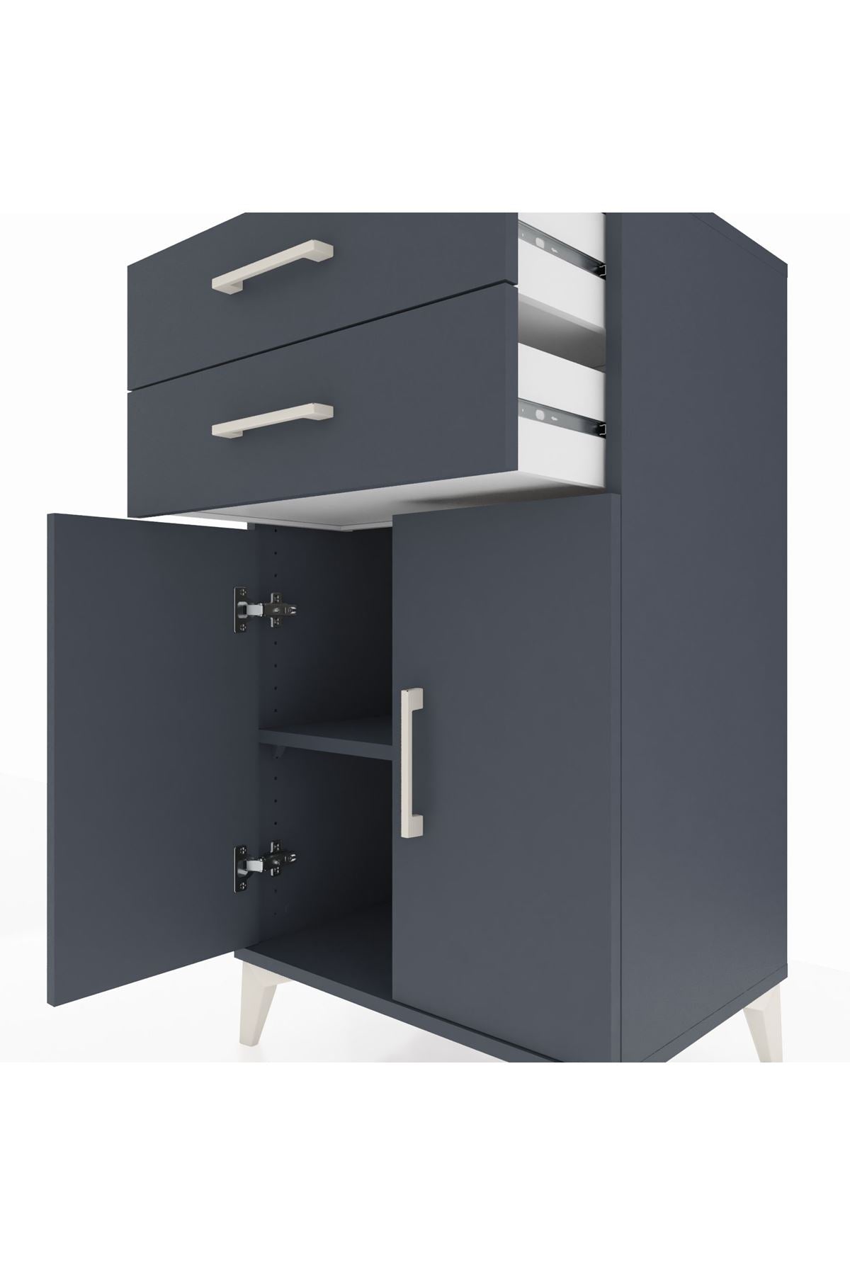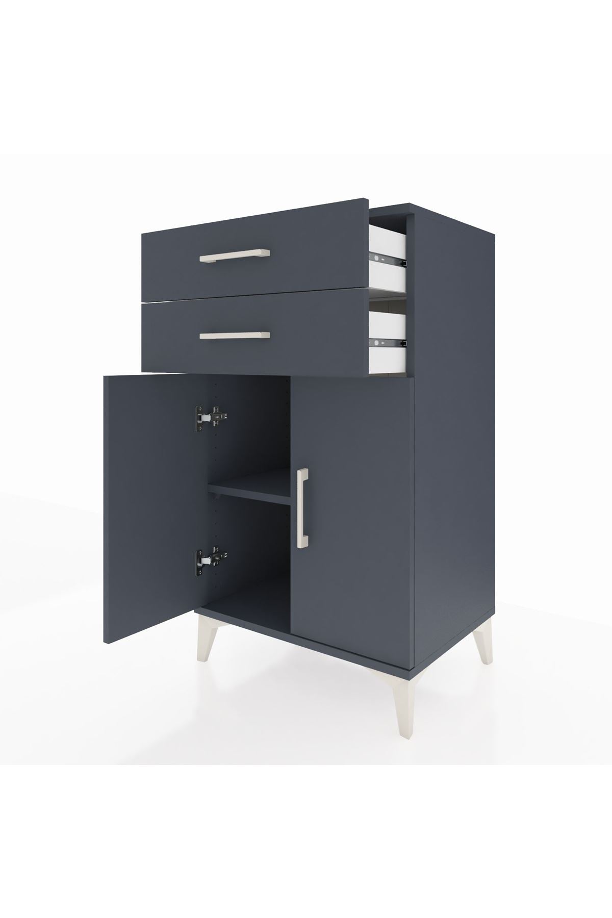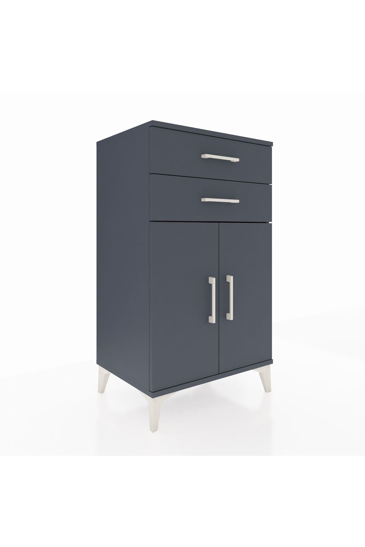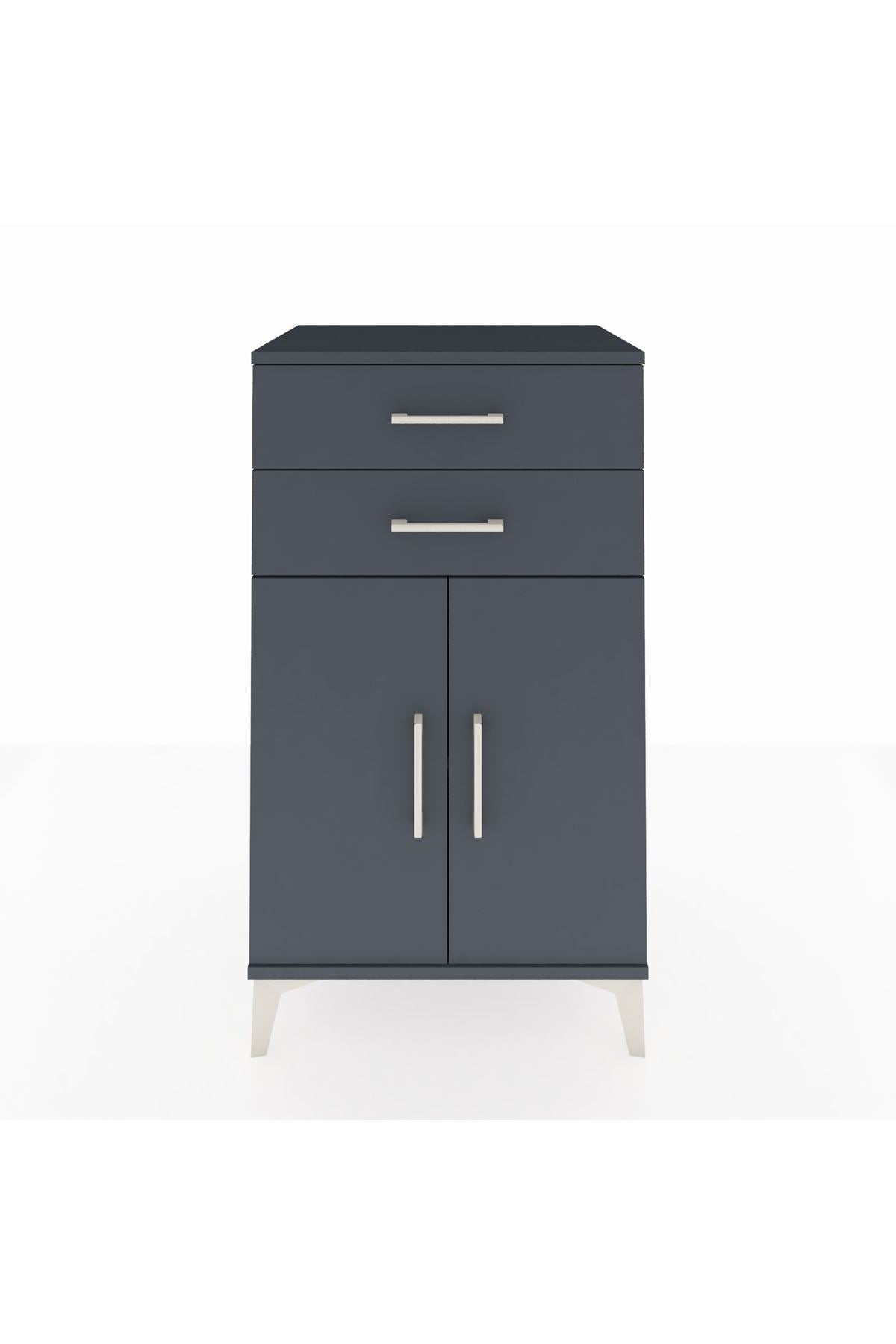 Hyperion Komodin Tek Raflı 2 Çekmeceli 2 Kapaklı 60x44x106 Antrasit-Antrasit