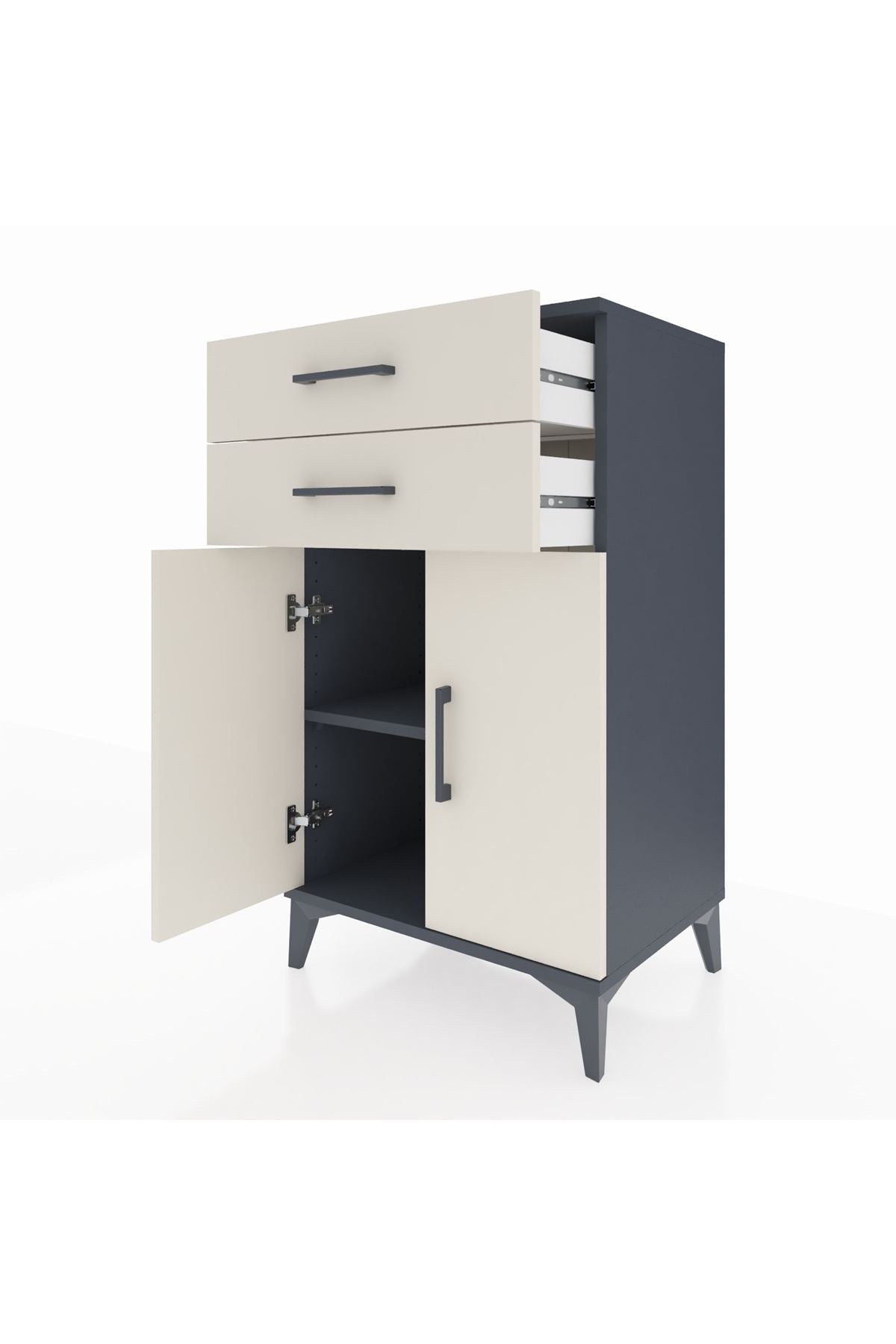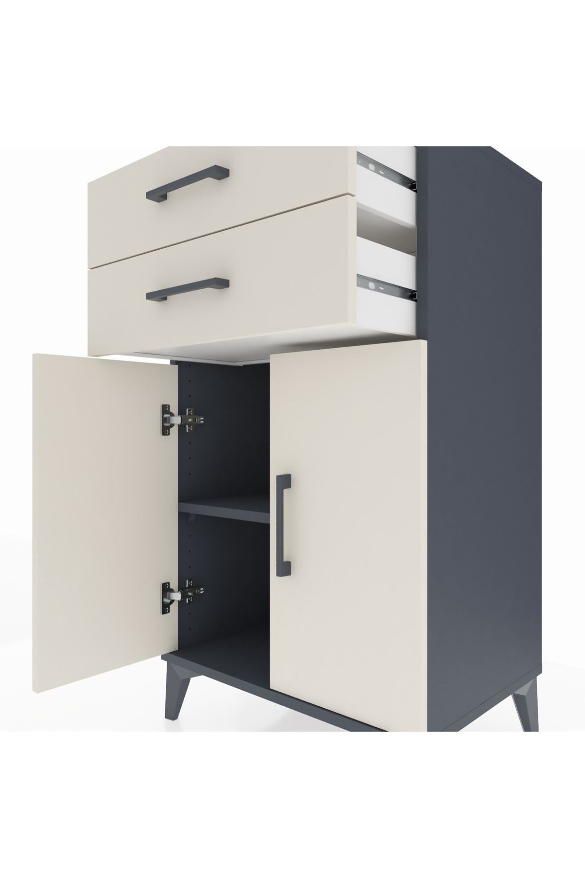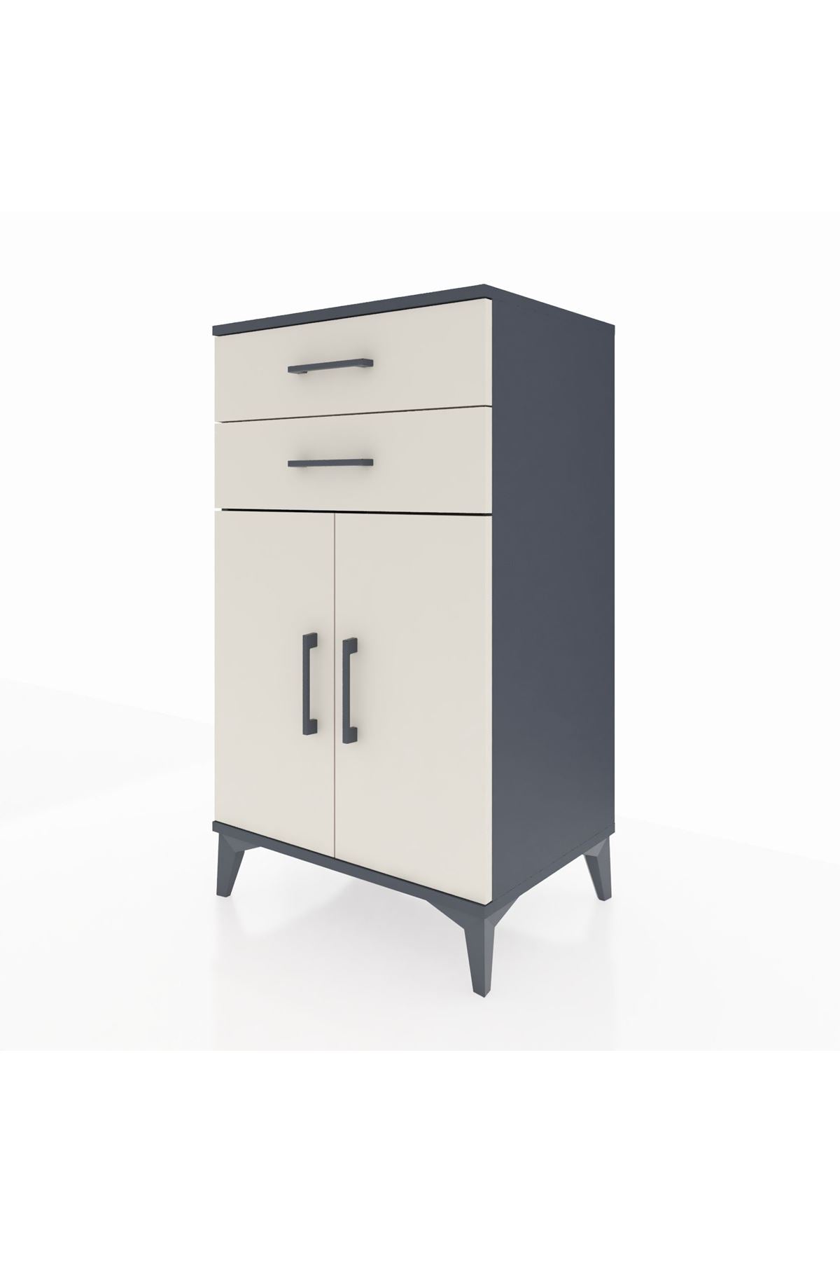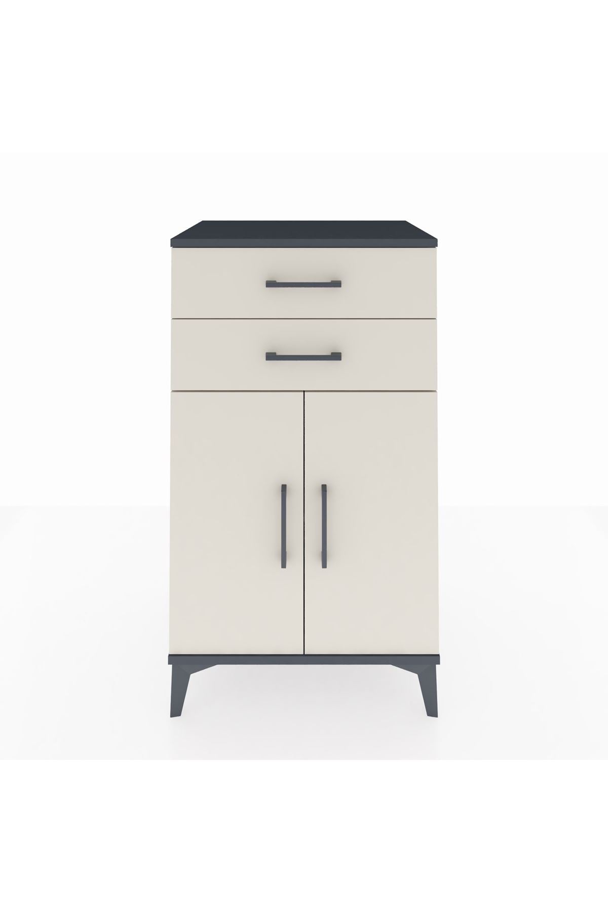 Hyperion Komodin Tek Raflı 2 Çekmeceli 2 Kapaklı 60x44x106 Antrasit-Aytaşı