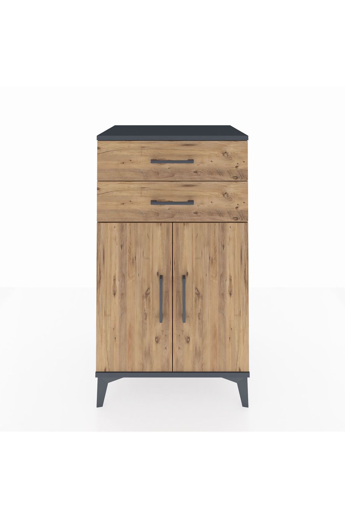 Hyperion Komodin Tek Raflı 2 Çekmeceli 2 Kapaklı 60x44x106 Antrasit-Çam