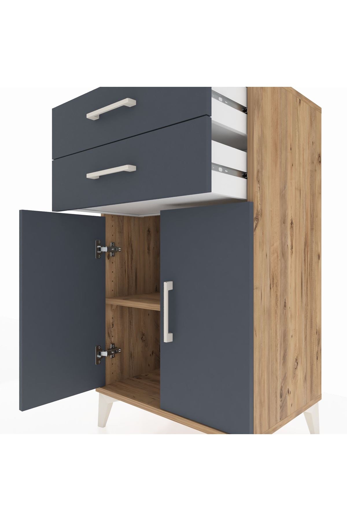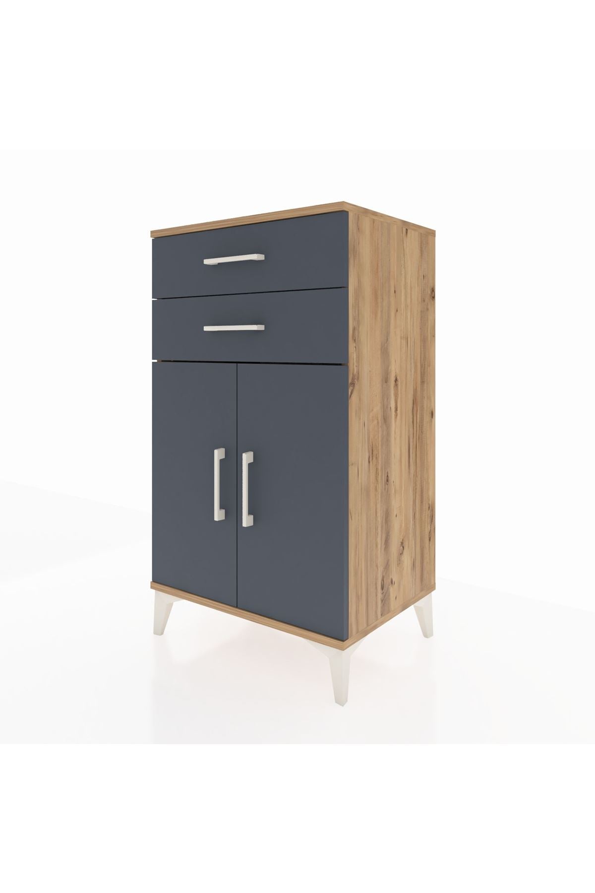 Hyperion Komodin Tek Raflı 2 Çekmeceli 2 Kapaklı 60x44x106 Çam-Antrasit