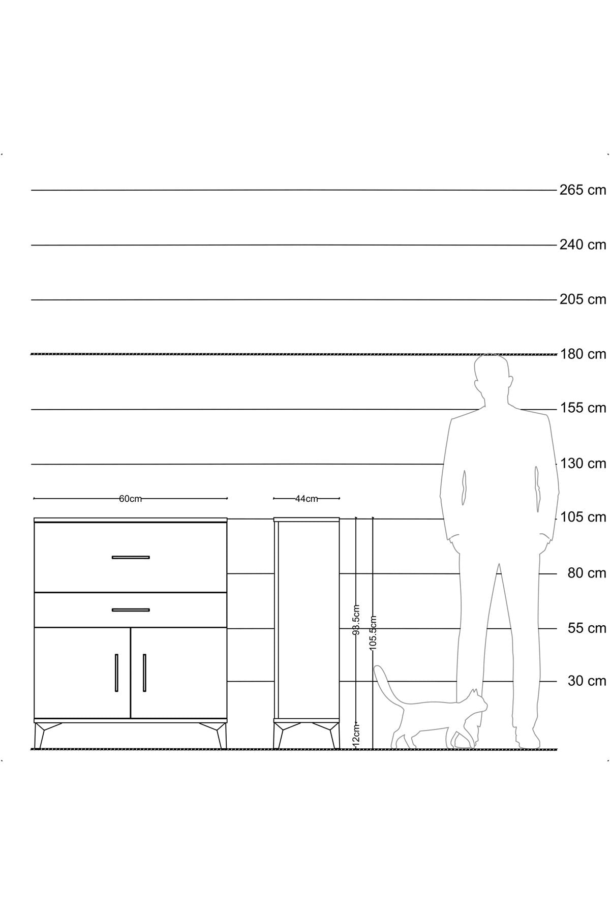 Hyperion Komodin Tek Raflı 2 Çekmeceli 2 Kapaklı 60x44x106 Çam-Antrasit