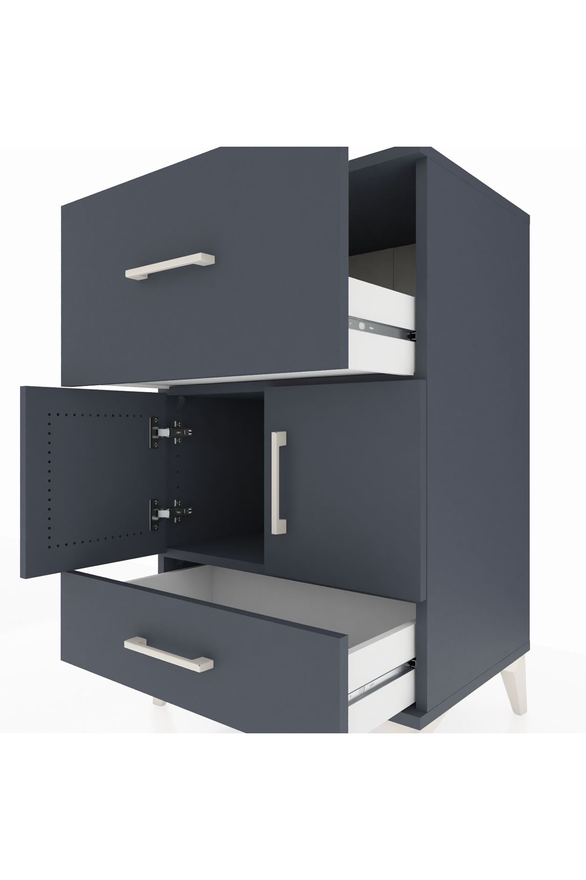 Hyperion Komodin Tek Raflı 2 Çekmeceli 2 Kapaklı 60x44x96 Antrasit-Antrasit
