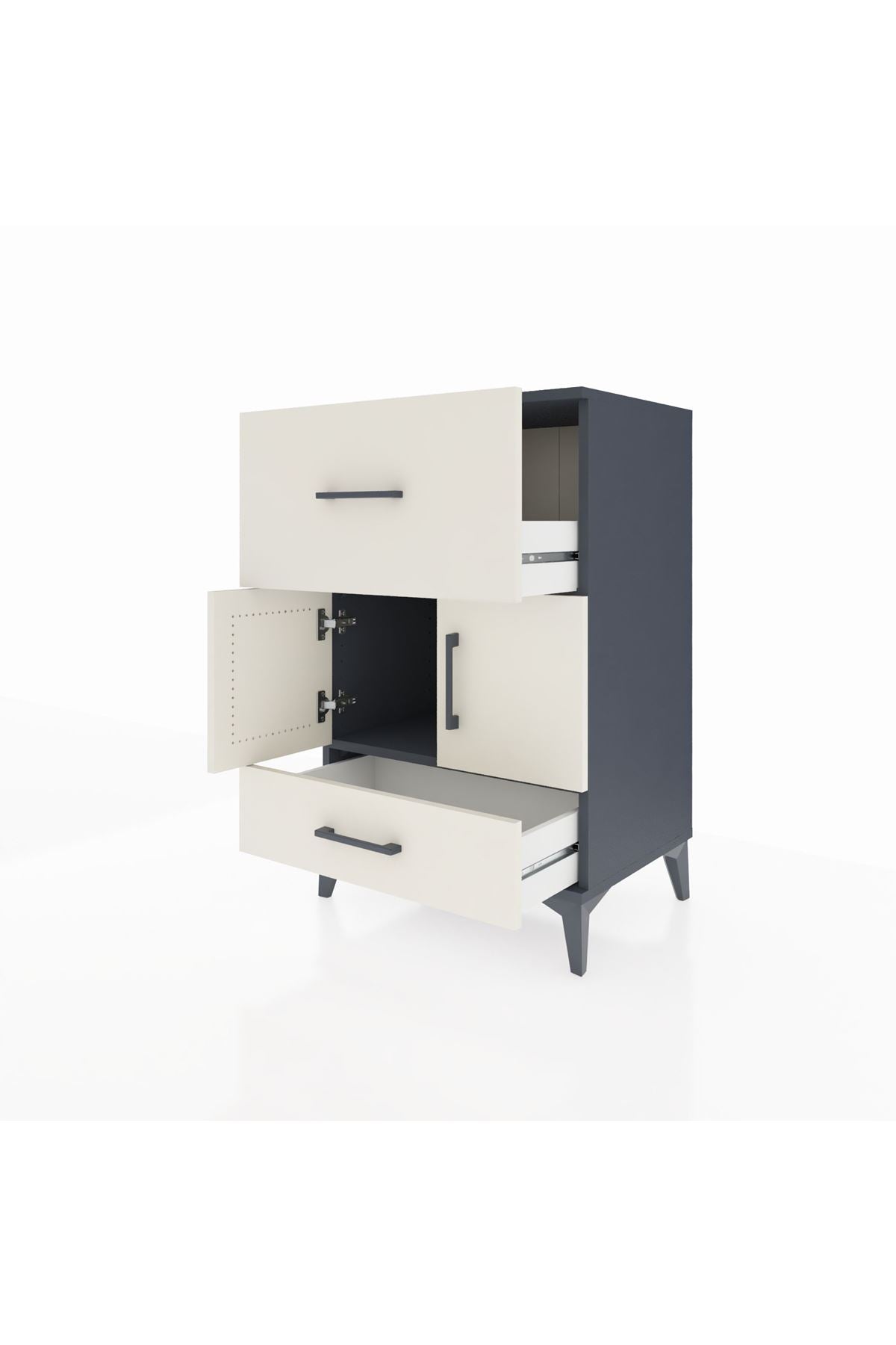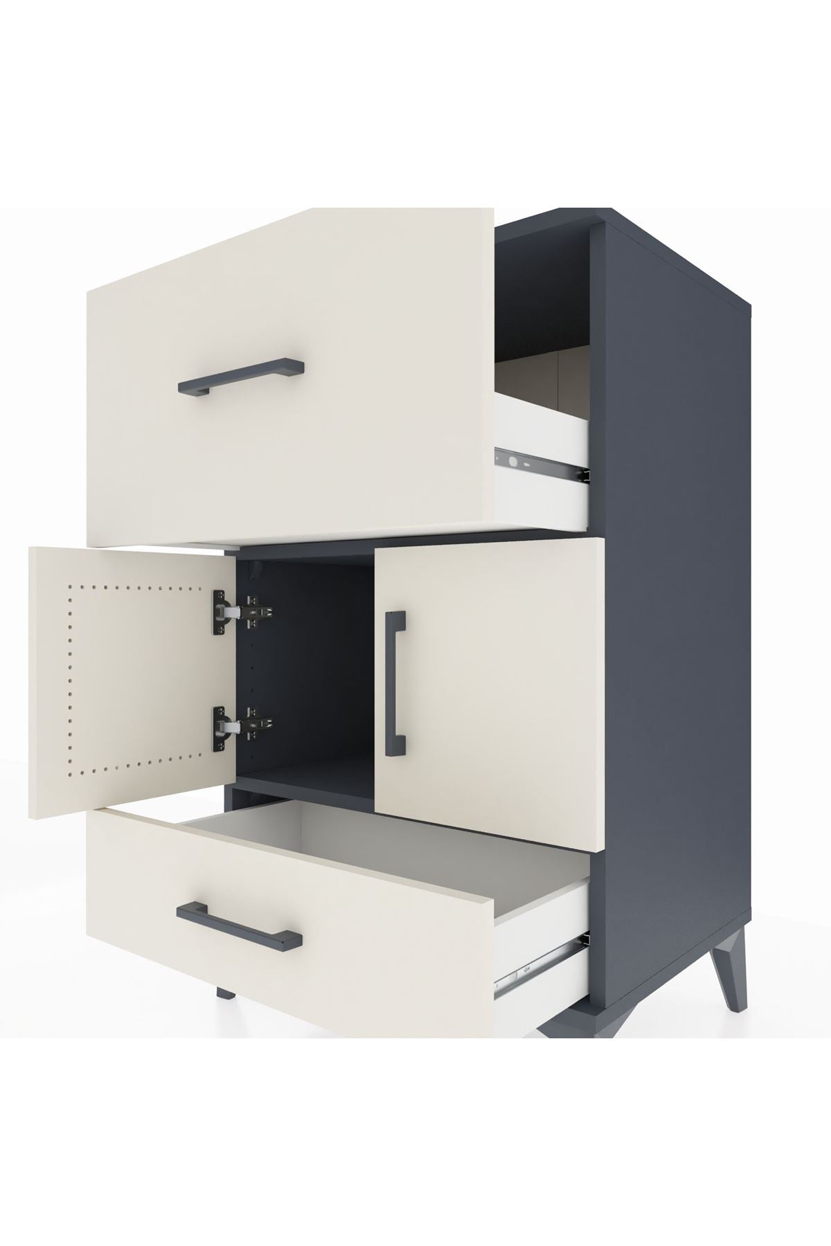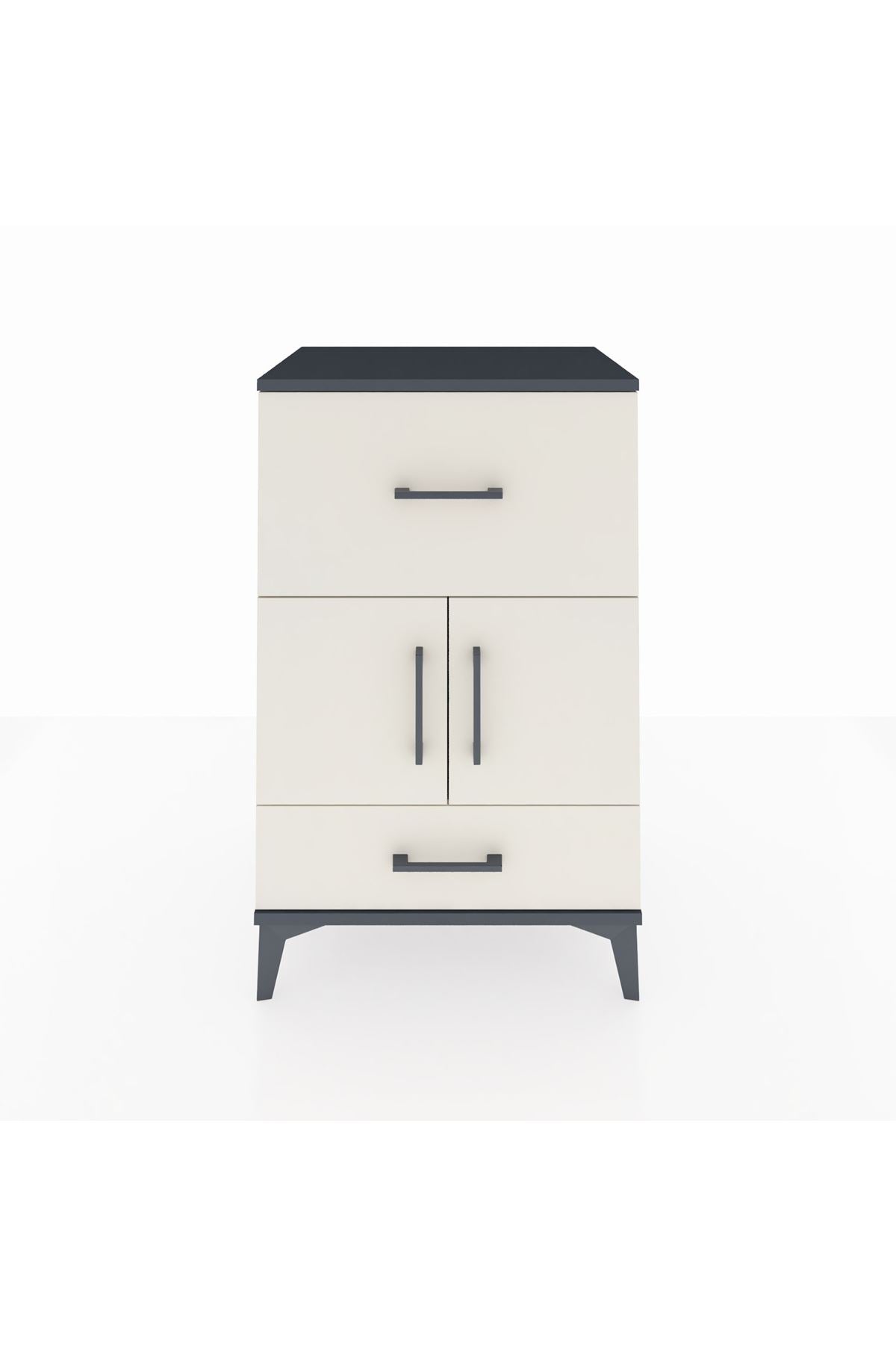 Hyperion Komodin Tek Raflı 2 Çekmeceli 2 Kapaklı 60x44x96 Antrasit-Aytaşı