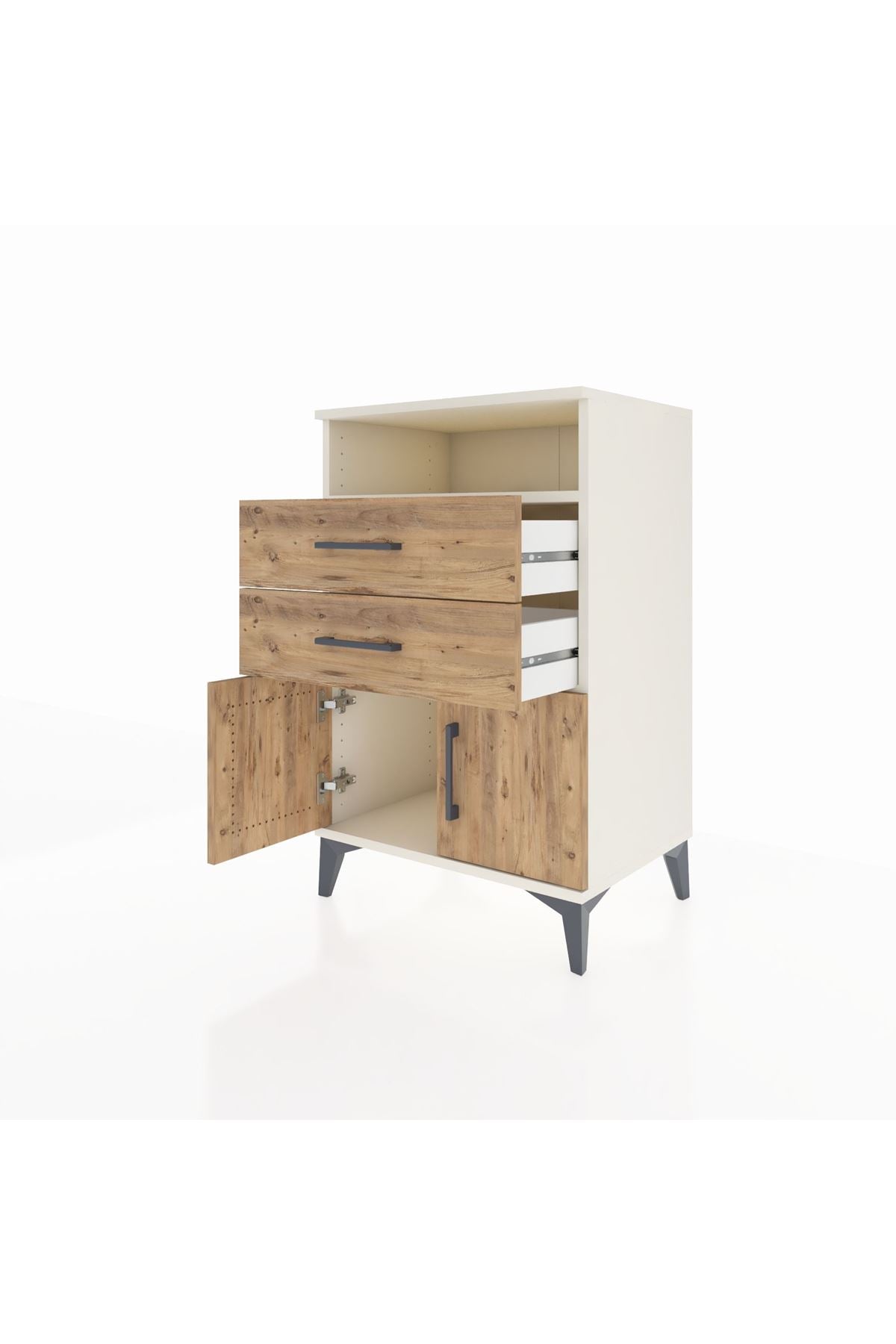 Hyperion Komodin Tek Raflı 2 Çekmeceli 2 Kapaklı 60x44x96 Aytaşı-Çam