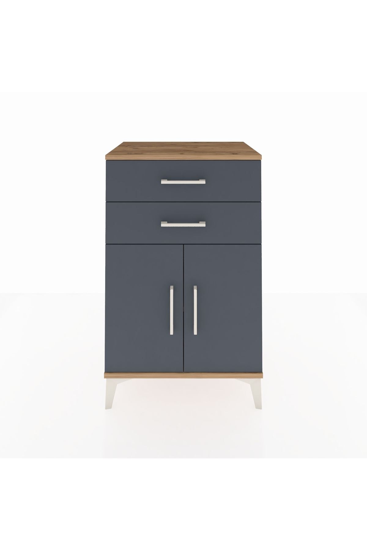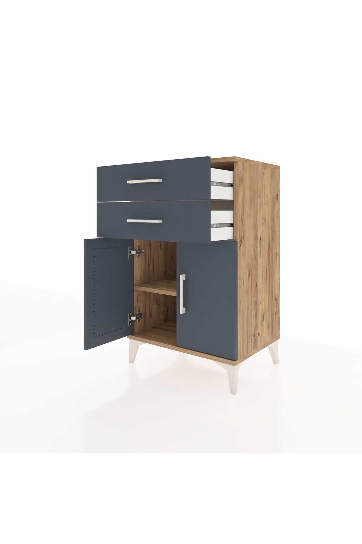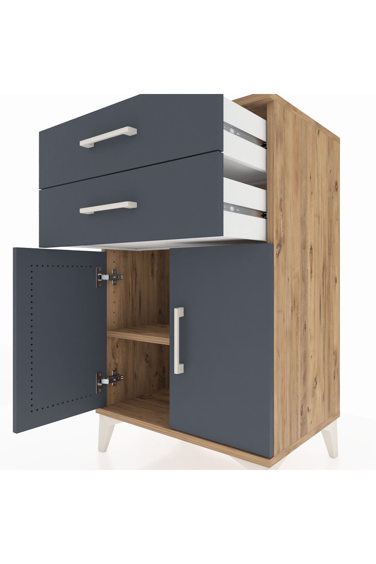 Hyperion Komodin Tek Raflı 2 Çekmeceli 2 Kapaklı 60x44x96 Çam-Antrasit