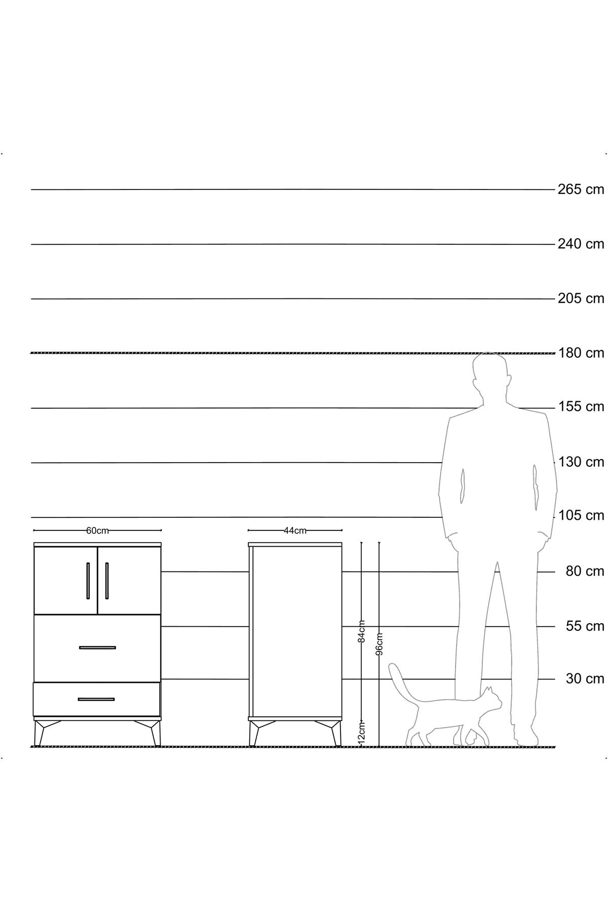 Hyperion Komodin Tek Raflı 2 Çekmeceli 2 Kapaklı 60x44x96 Çam-Aytaşı
