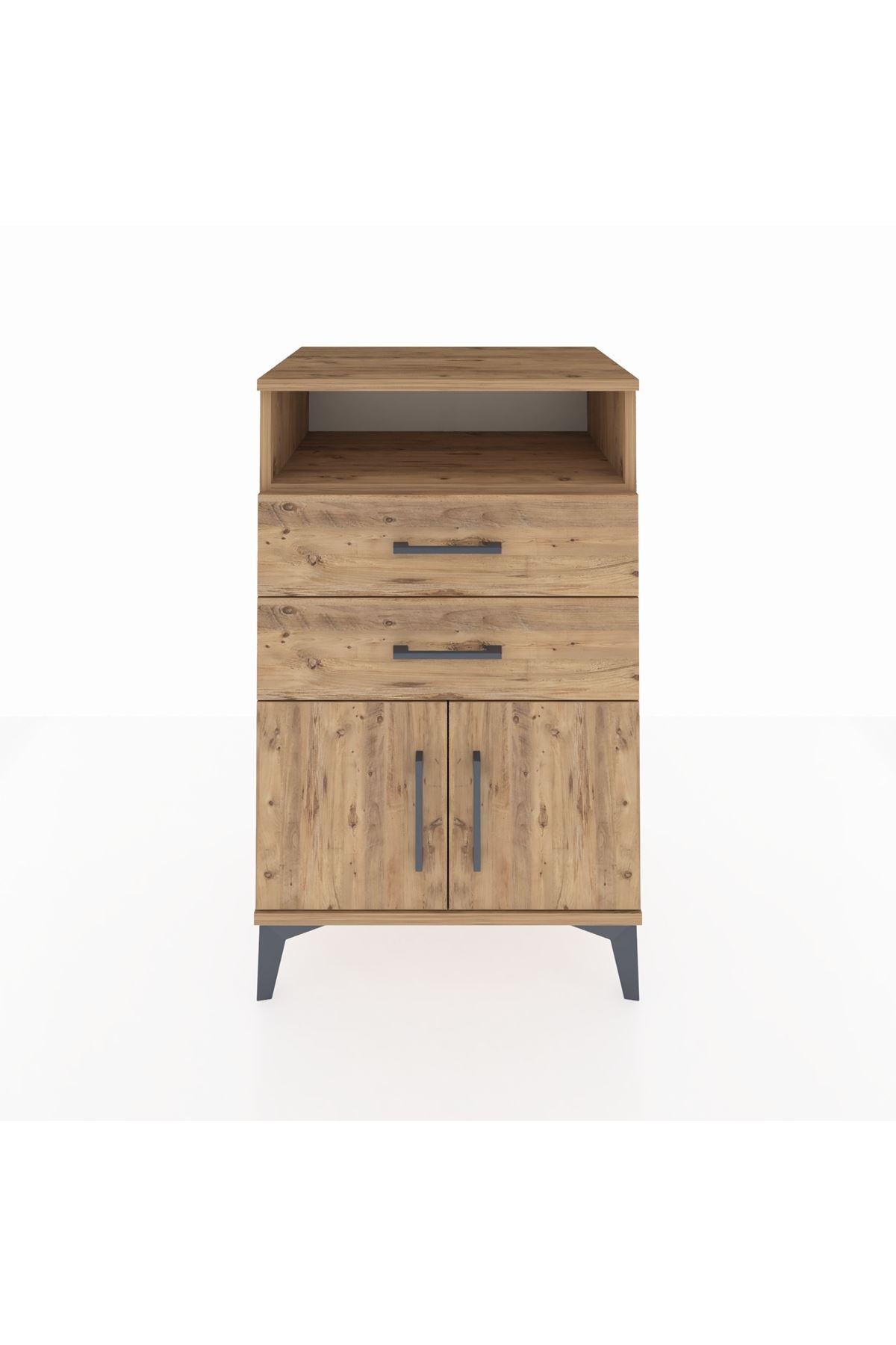 Hyperion Komodin Tek Raflı 2 Çekmeceli 2 Kapaklı 60x44x96 Çam-Çam