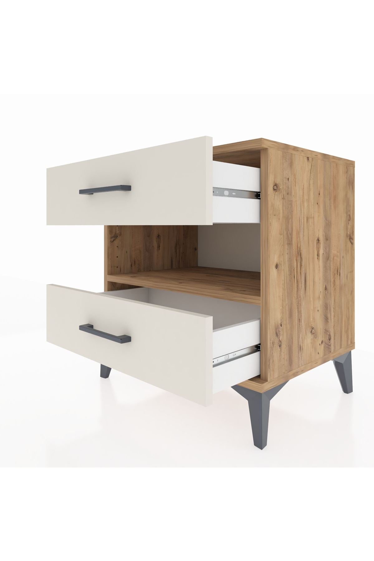 Hyperion Komodin Tek Raflı 2 Çekmeceli 60x44x64 Çam-Aytaşı