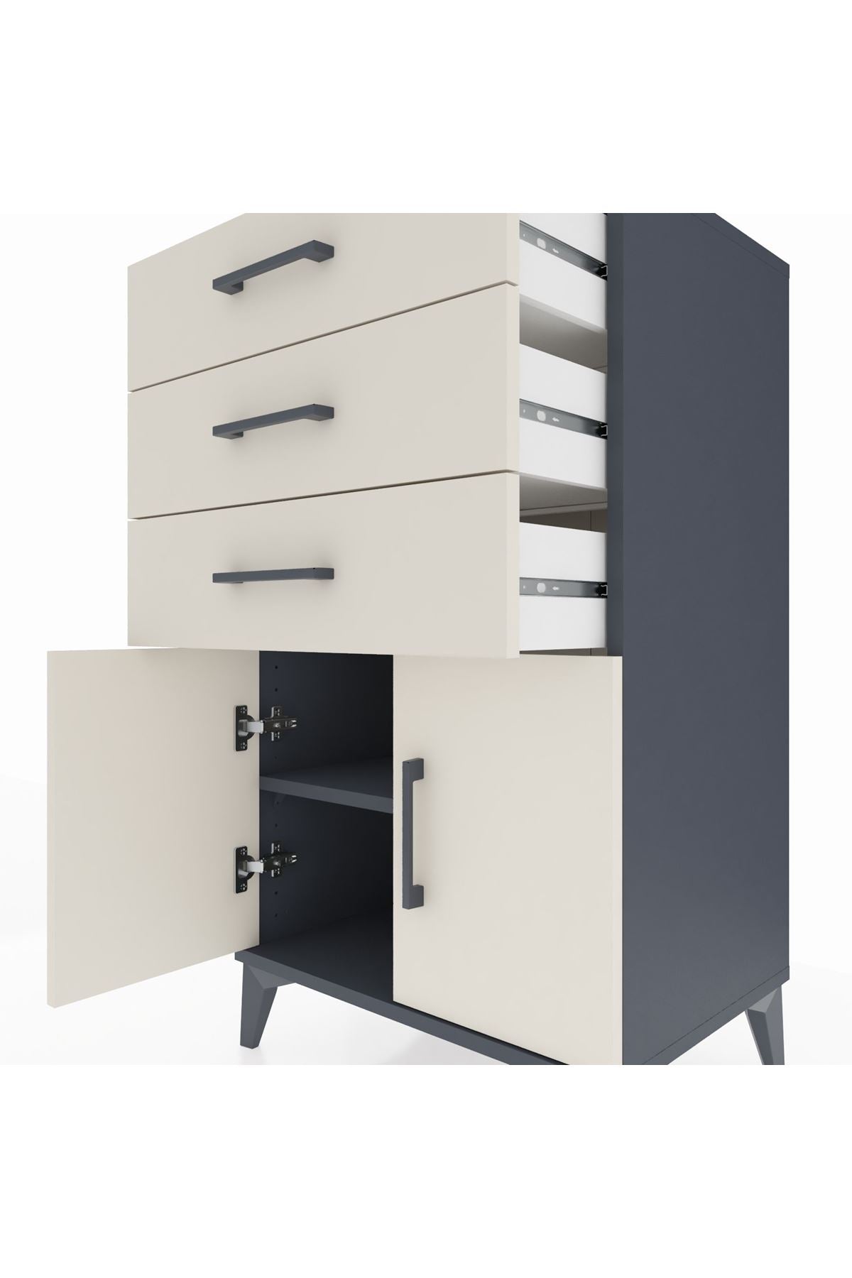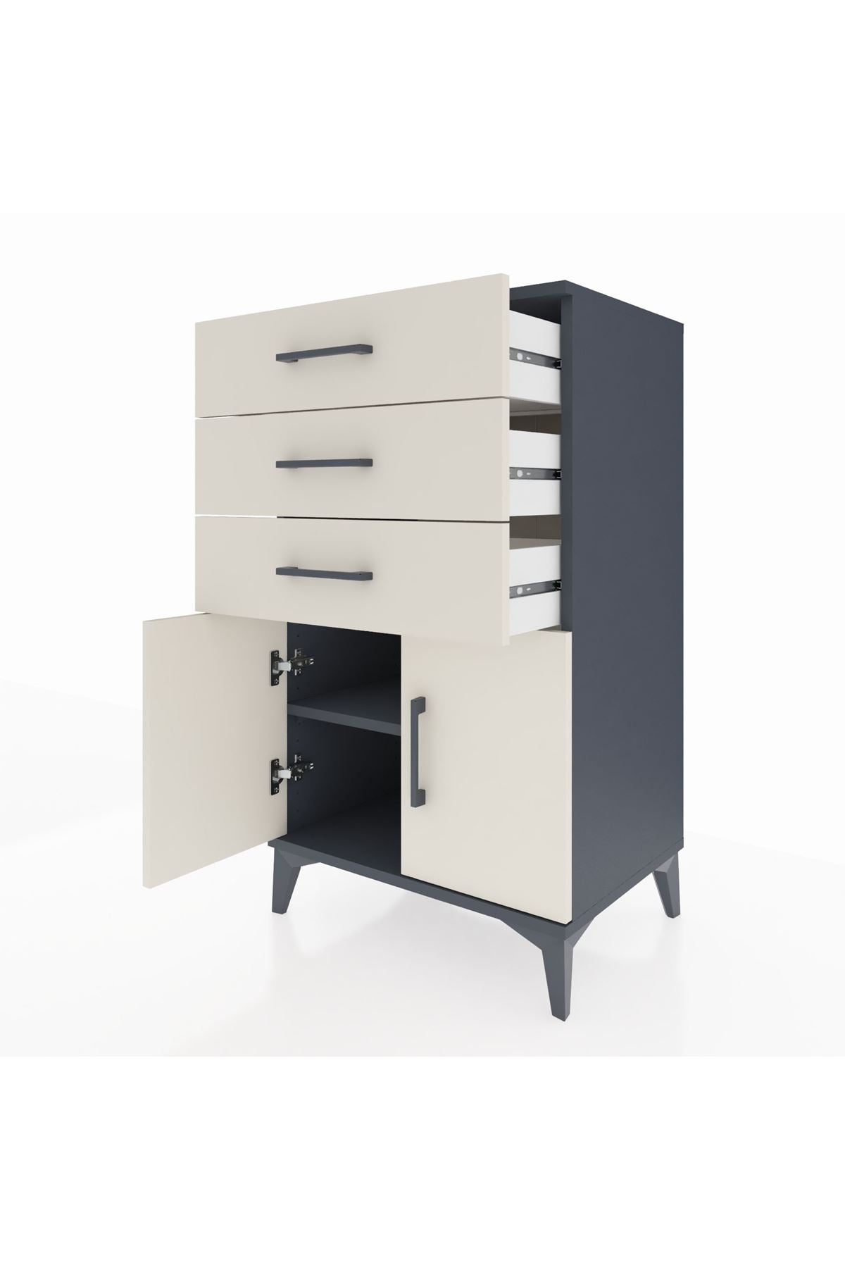 Hyperion Komodin Tek Raflı 3 Çekmeceli 2 Kapaklı 60x44x106 Antrasit-Aytaşı