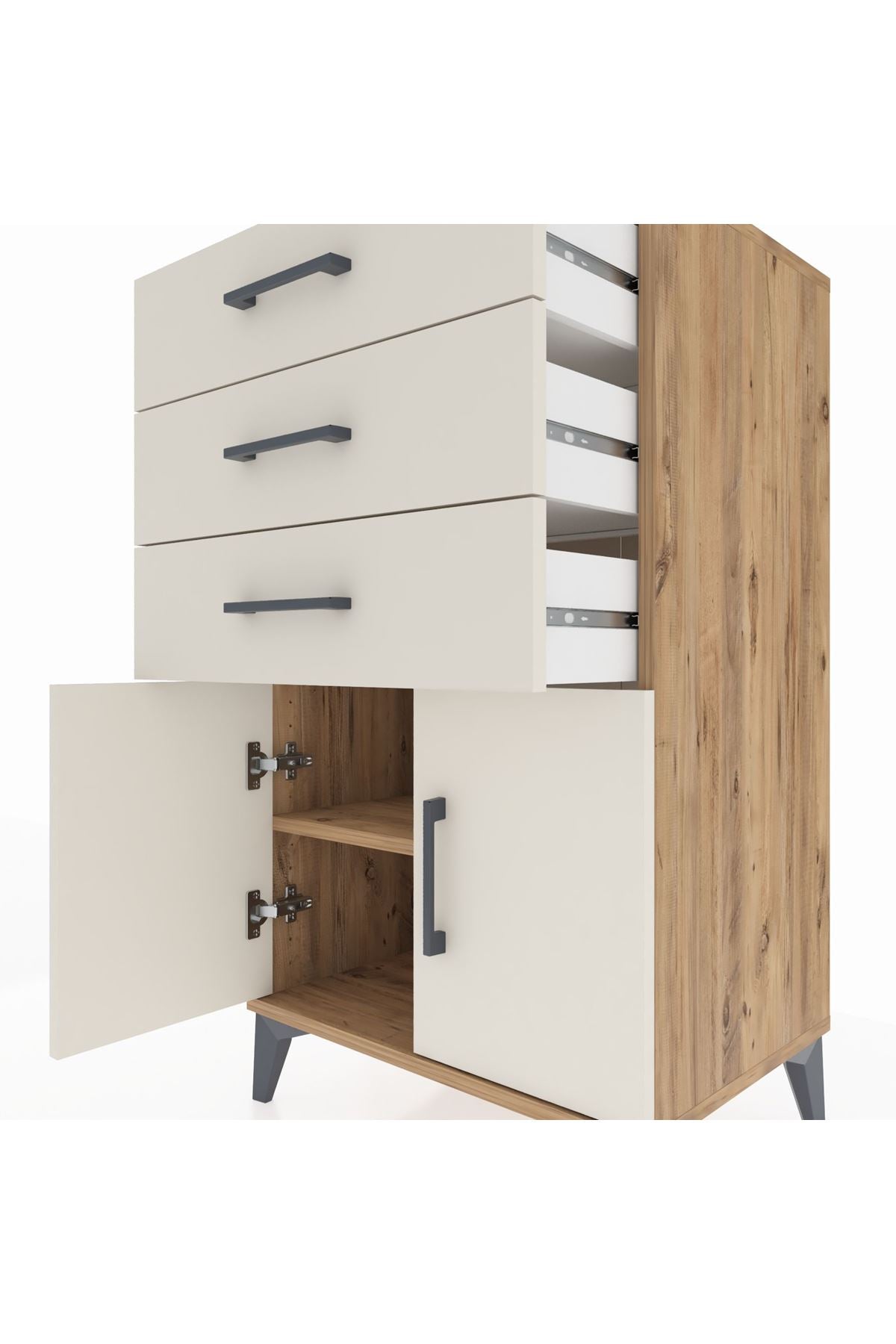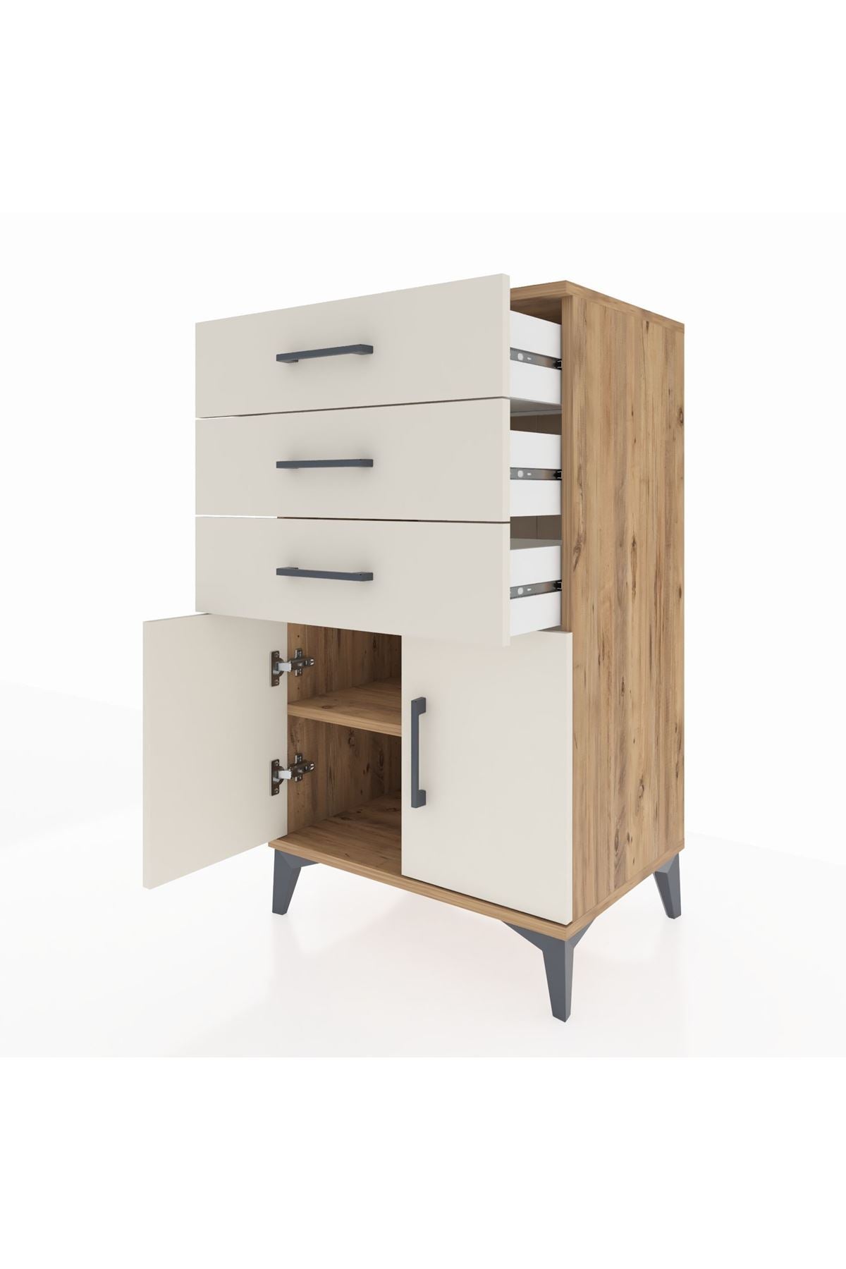 Hyperion Komodin Tek Raflı 3 Çekmeceli 2 Kapaklı 60x44x106 Çam-Aytaşı