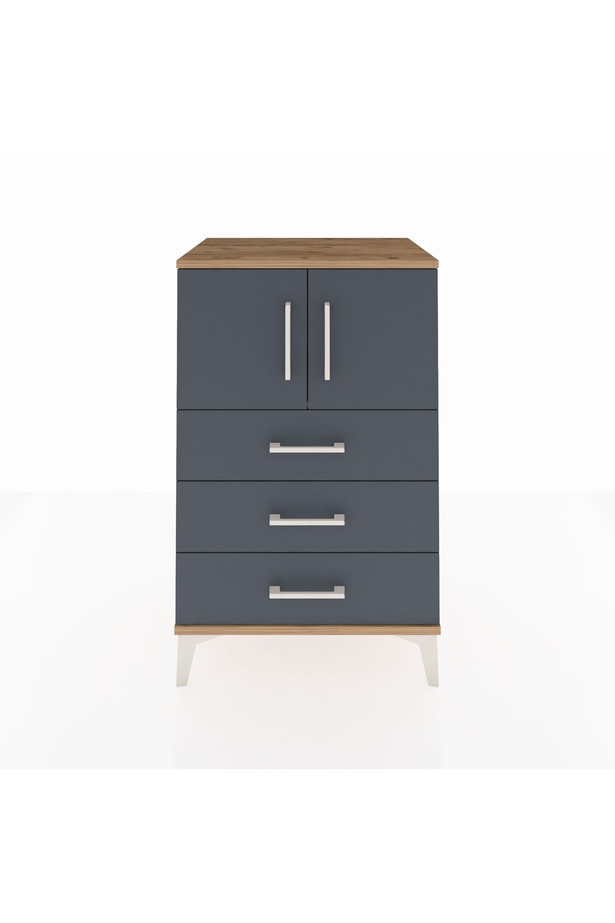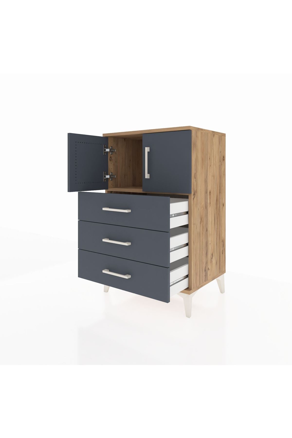 Hyperion Komodin Tek Raflı 3 Çekmeceli 2 Kapaklı 60x44x96 Çam-Antrasit