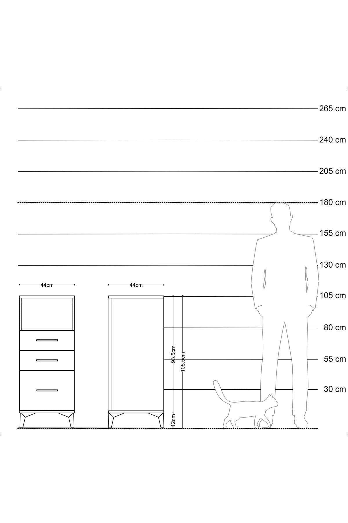 Hyperion Komodin Tek Raflı 3 Çekmeceli 44x44x106 Aytaşı-Çam
