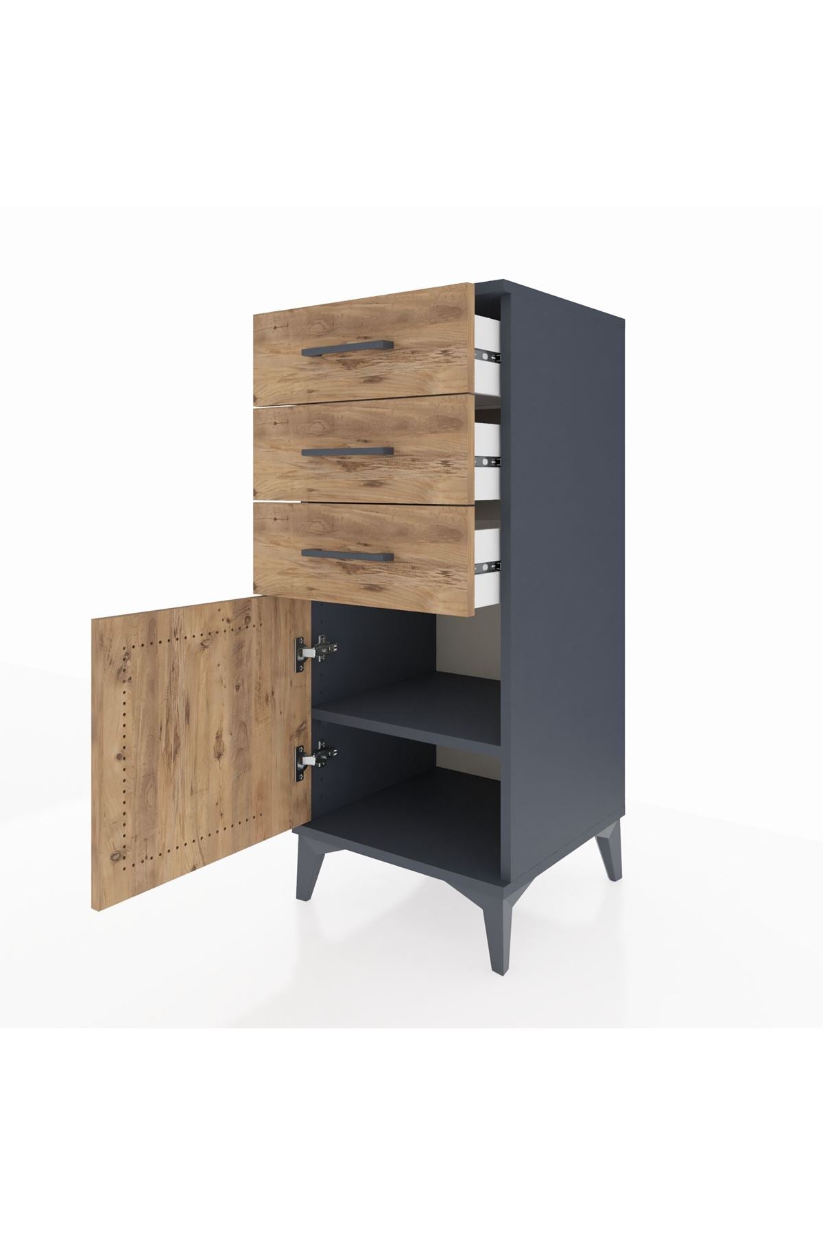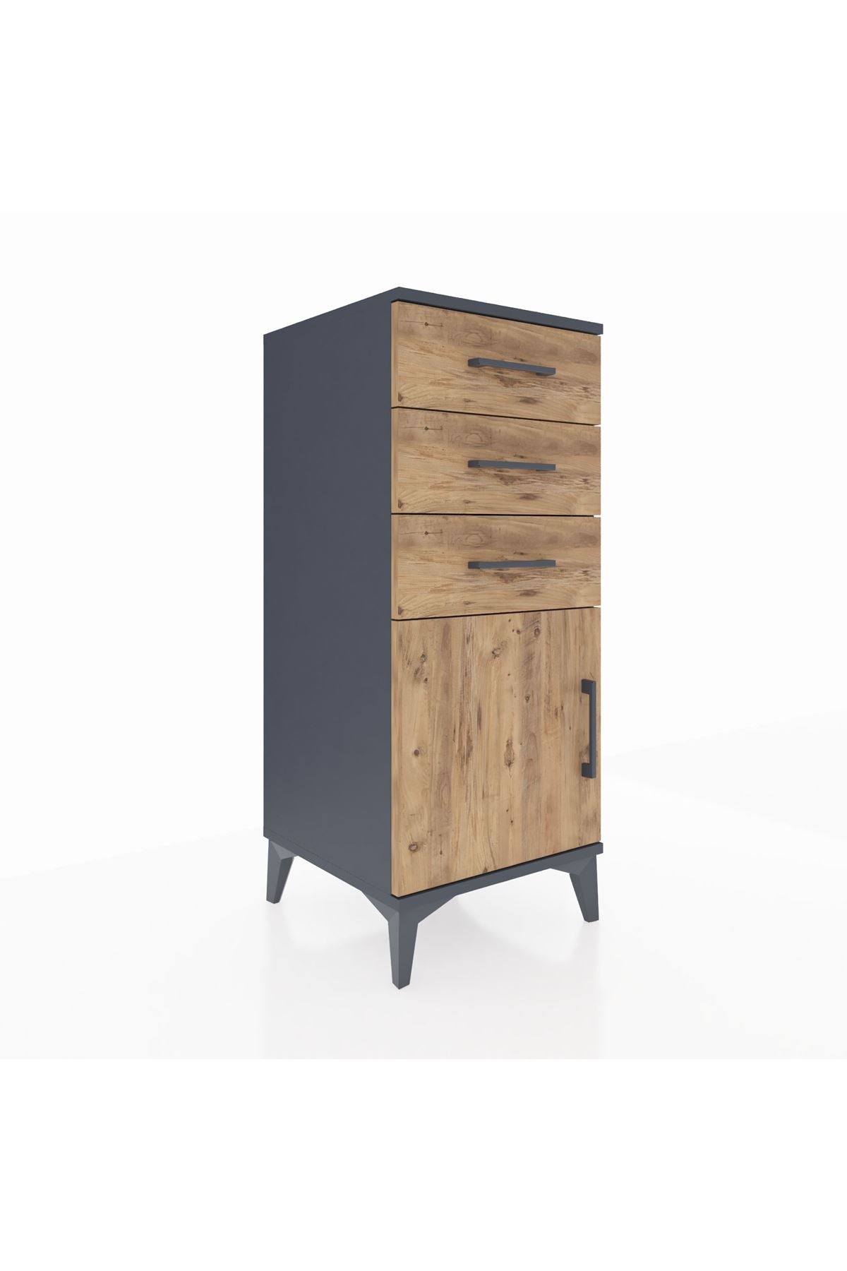 Hyperion Komodin Tek Raflı 3 Çekmeceli Tek Kapaklı 44x44x106 Antrasit-Çam