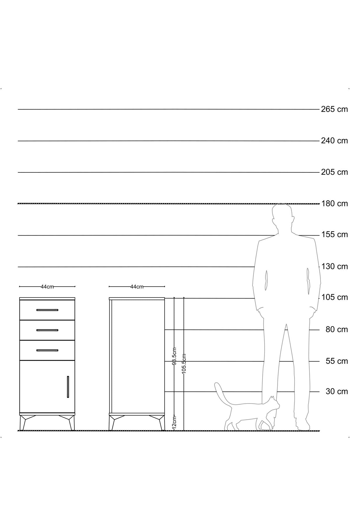 Hyperion Komodin Tek Raflı 3 Çekmeceli Tek Kapaklı 44x44x106 Aytaşı-Çam