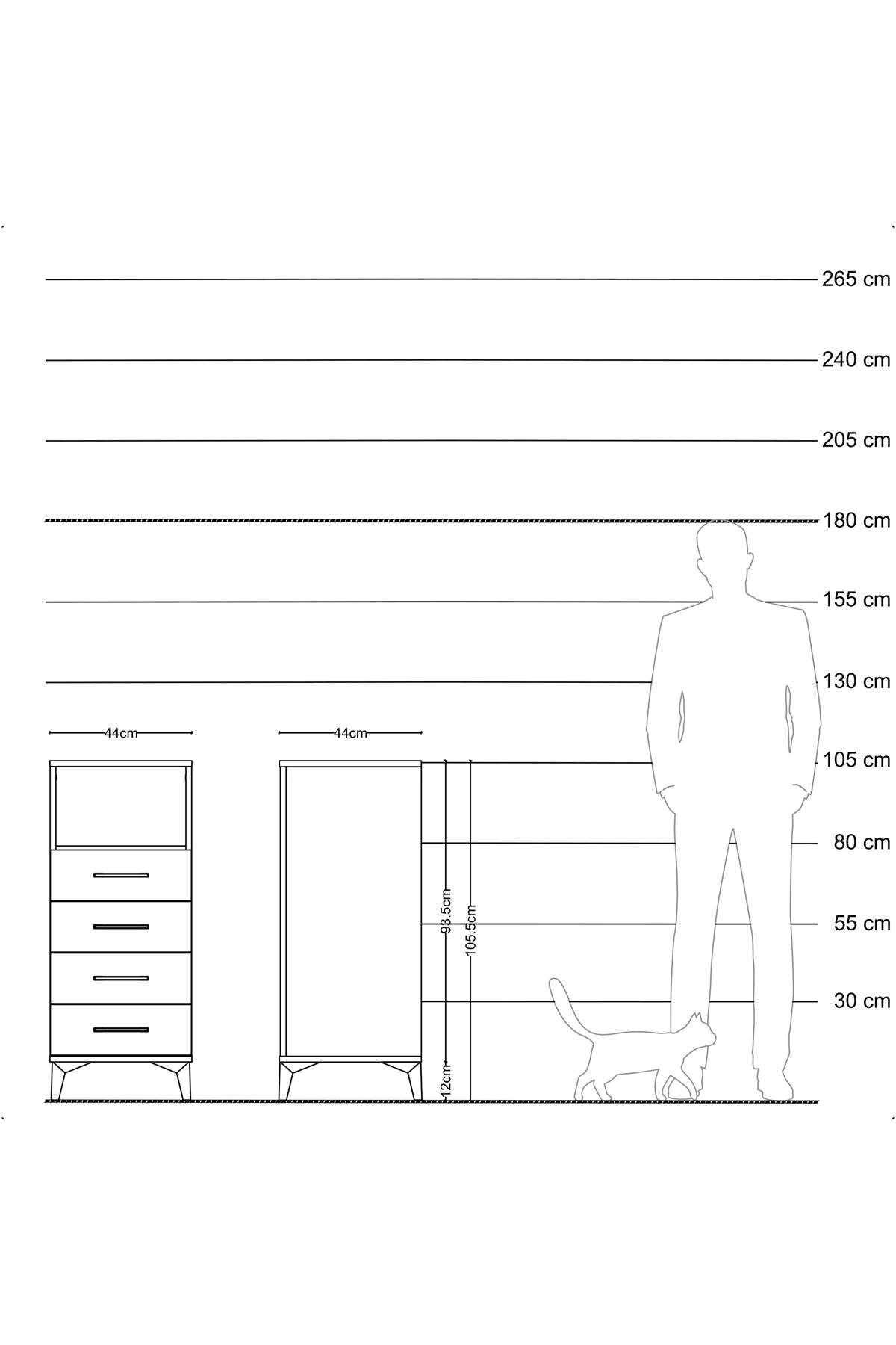 Hyperion Komodin Tek Raflı 4 Çekmeceli 44x44x106 Çam-Aytaşı