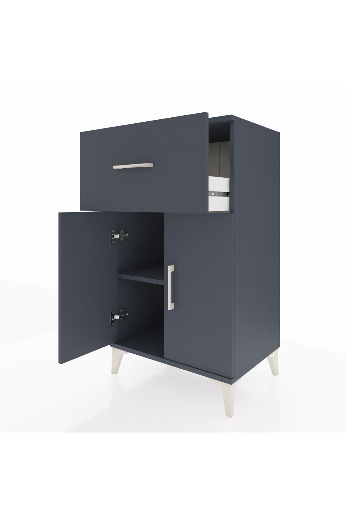Hyperion Komodin Tek Raflı Tek Çekmeceli 2 Kapaklı 60x44x106 Antrasit-Antrasit