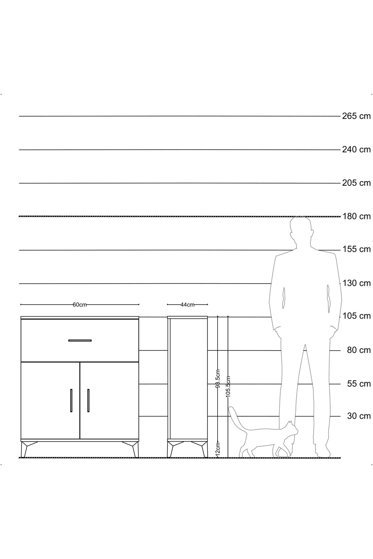 Hyperion Komodin Tek Raflı Tek Çekmeceli 2 Kapaklı 60x44x106 Antrasit-Aytaşı