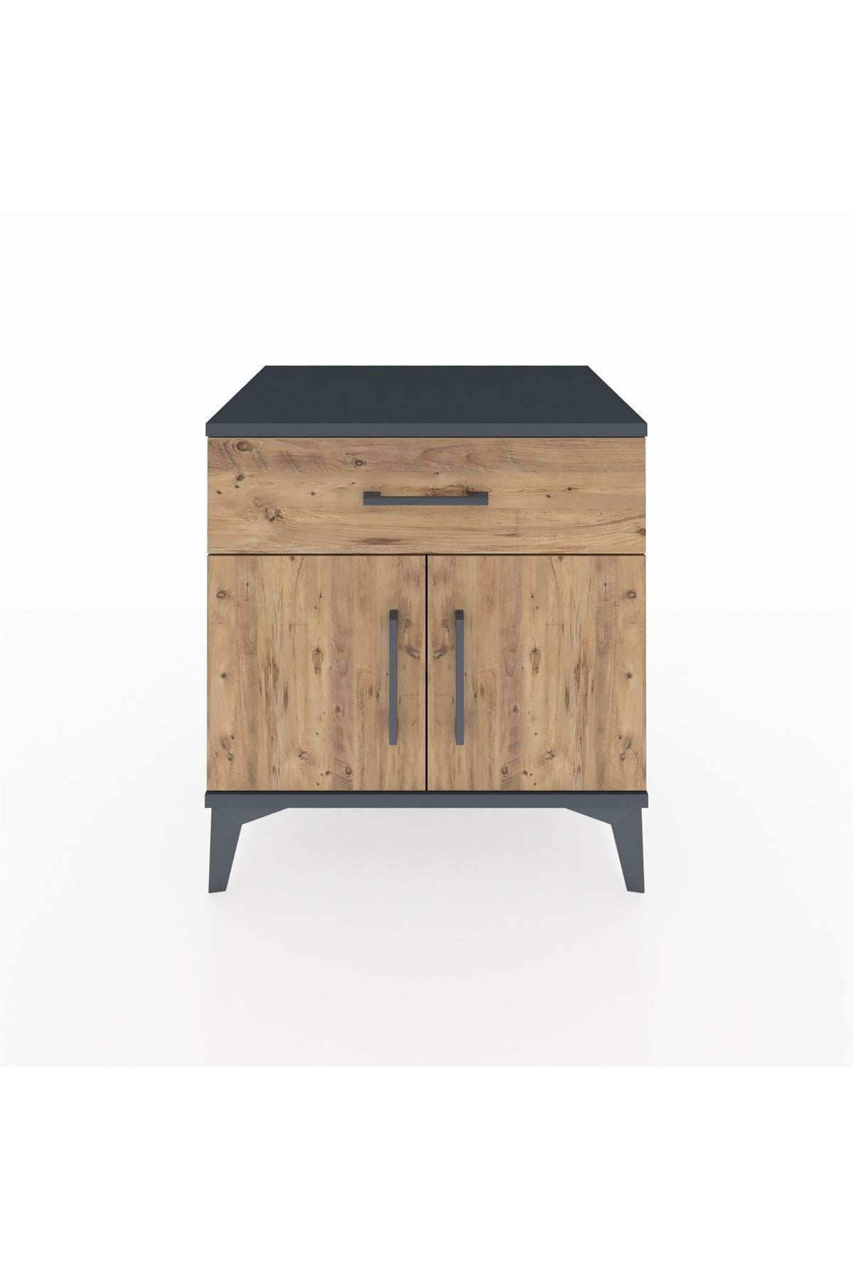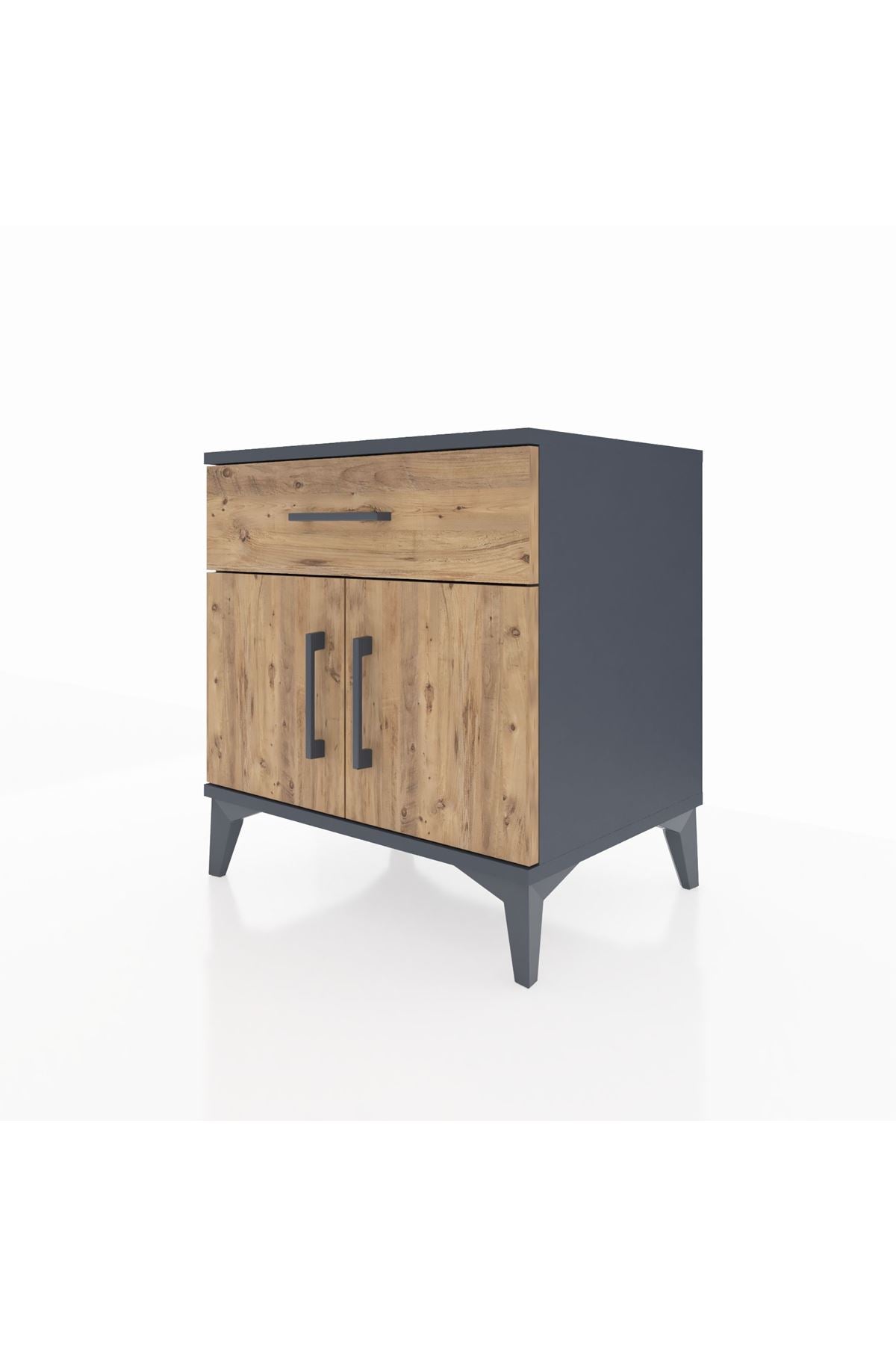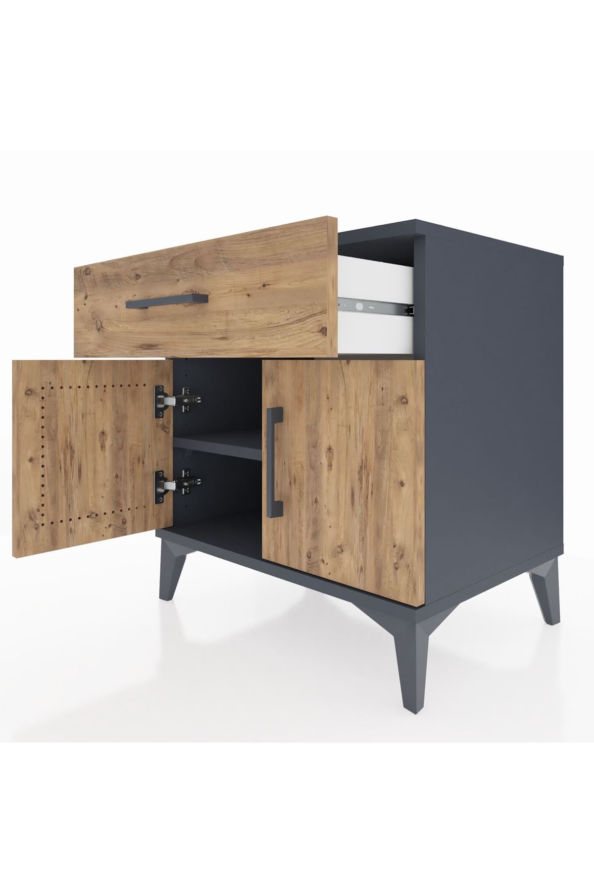 Hyperion Komodin Tek Raflı Tek Çekmeceli 2 Kapaklı 60x44x64 Antrasit-Çam