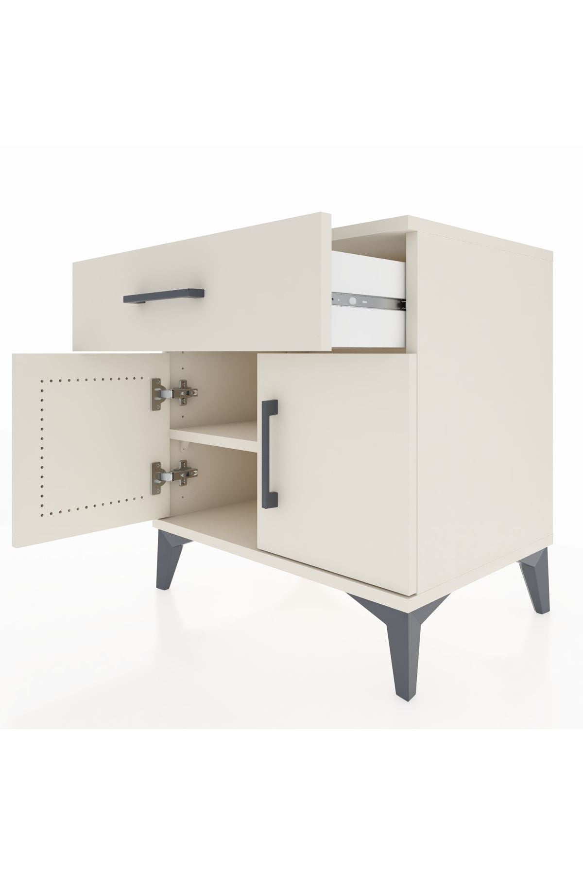 Hyperion Komodin Tek Raflı Tek Çekmeceli 2 Kapaklı 60x44x64 Aytaşı-Aytaşı