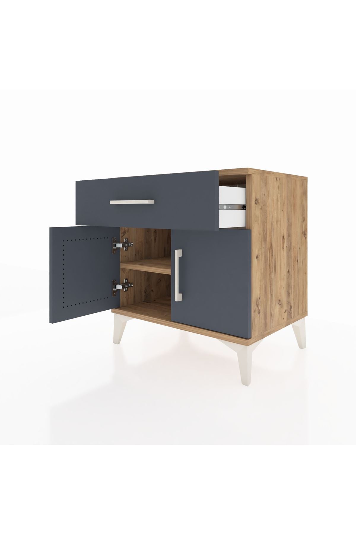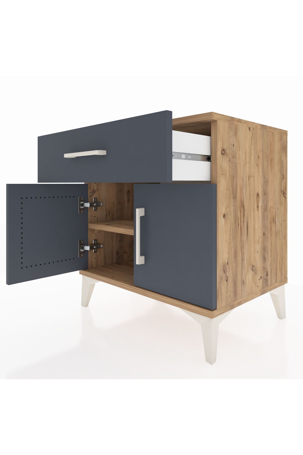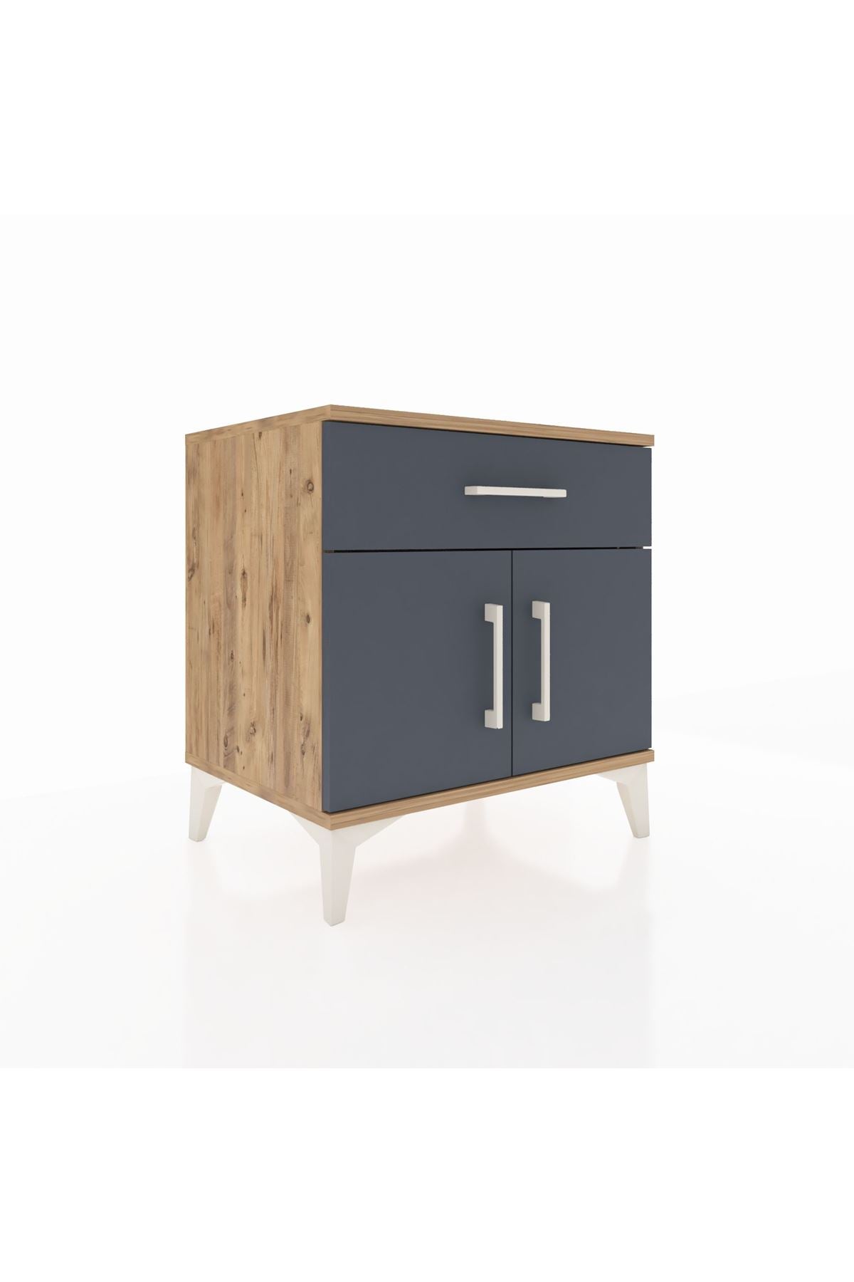 Hyperion Komodin Tek Raflı Tek Çekmeceli 2 Kapaklı 60x44x64 Çam-Antrasit