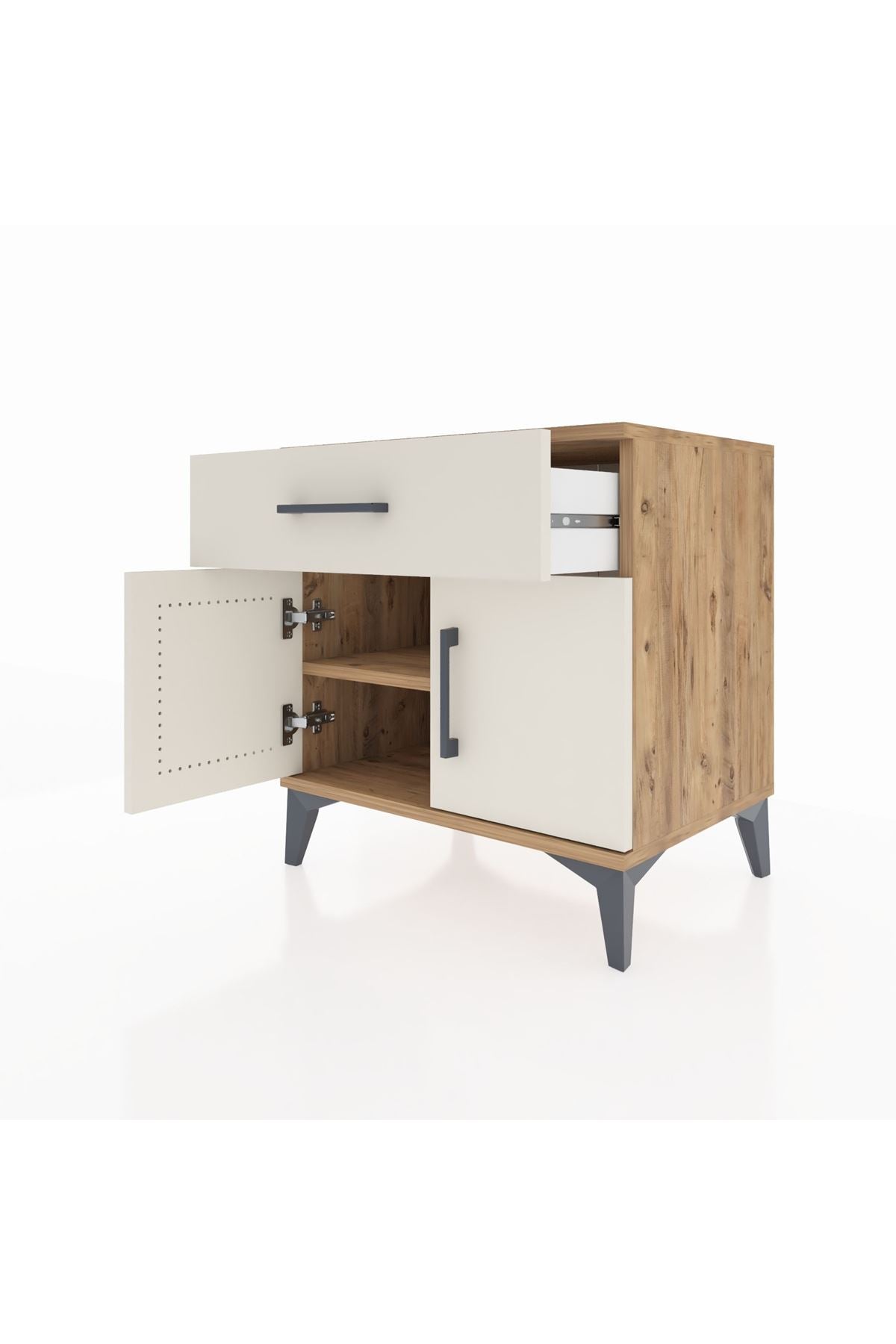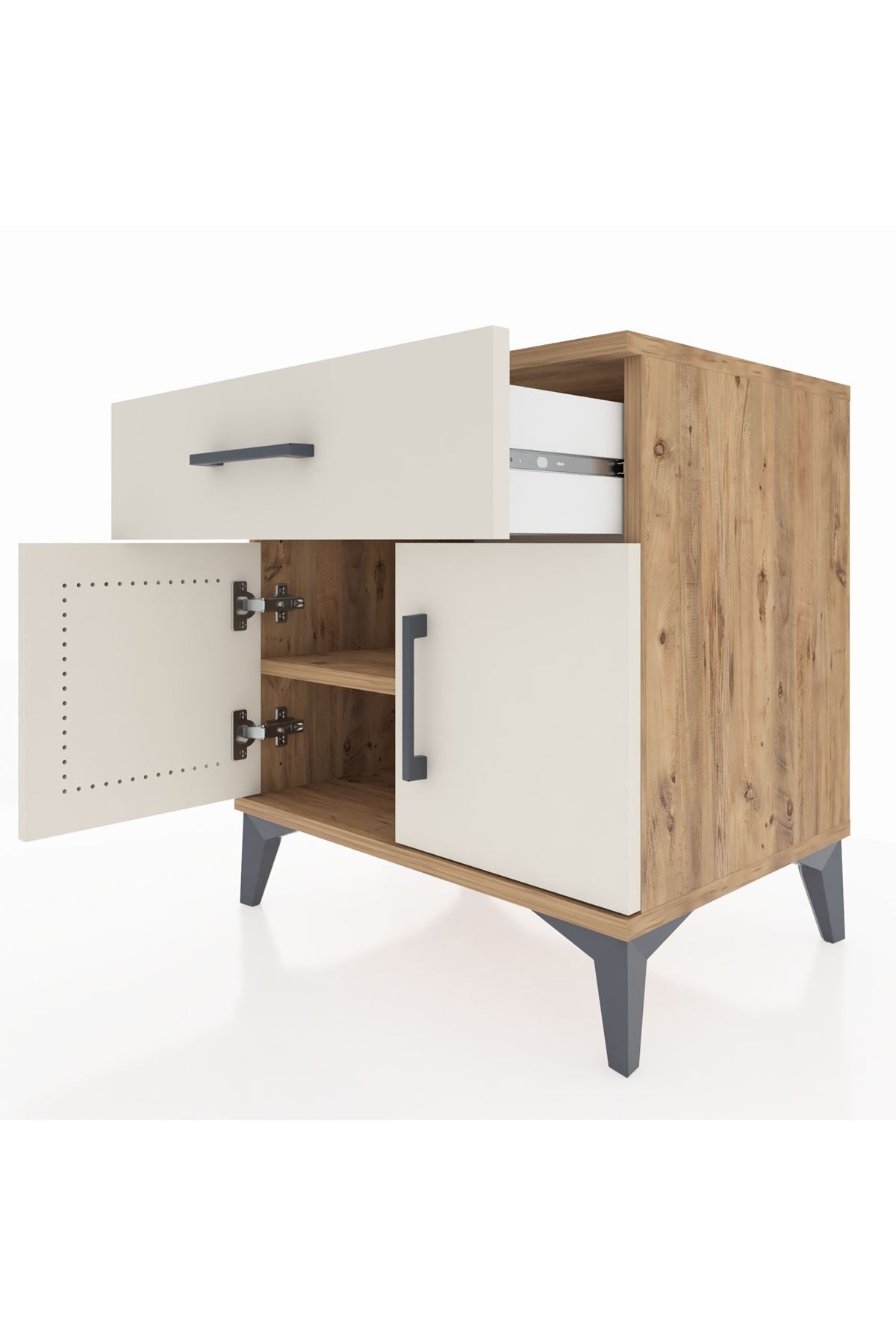 Hyperion Komodin Tek Raflı Tek Çekmeceli 2 Kapaklı 60x44x64 Çam-Aytaşı