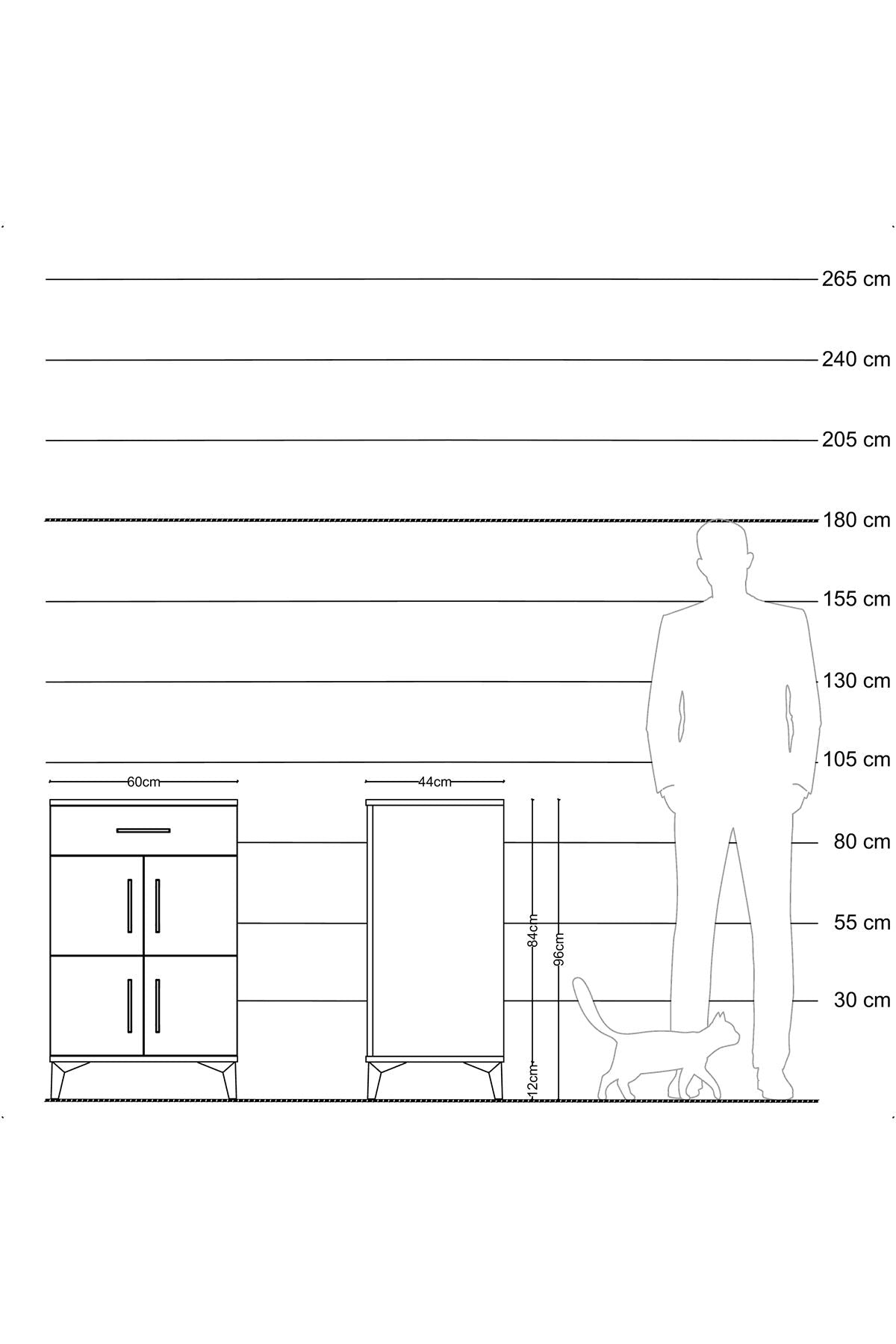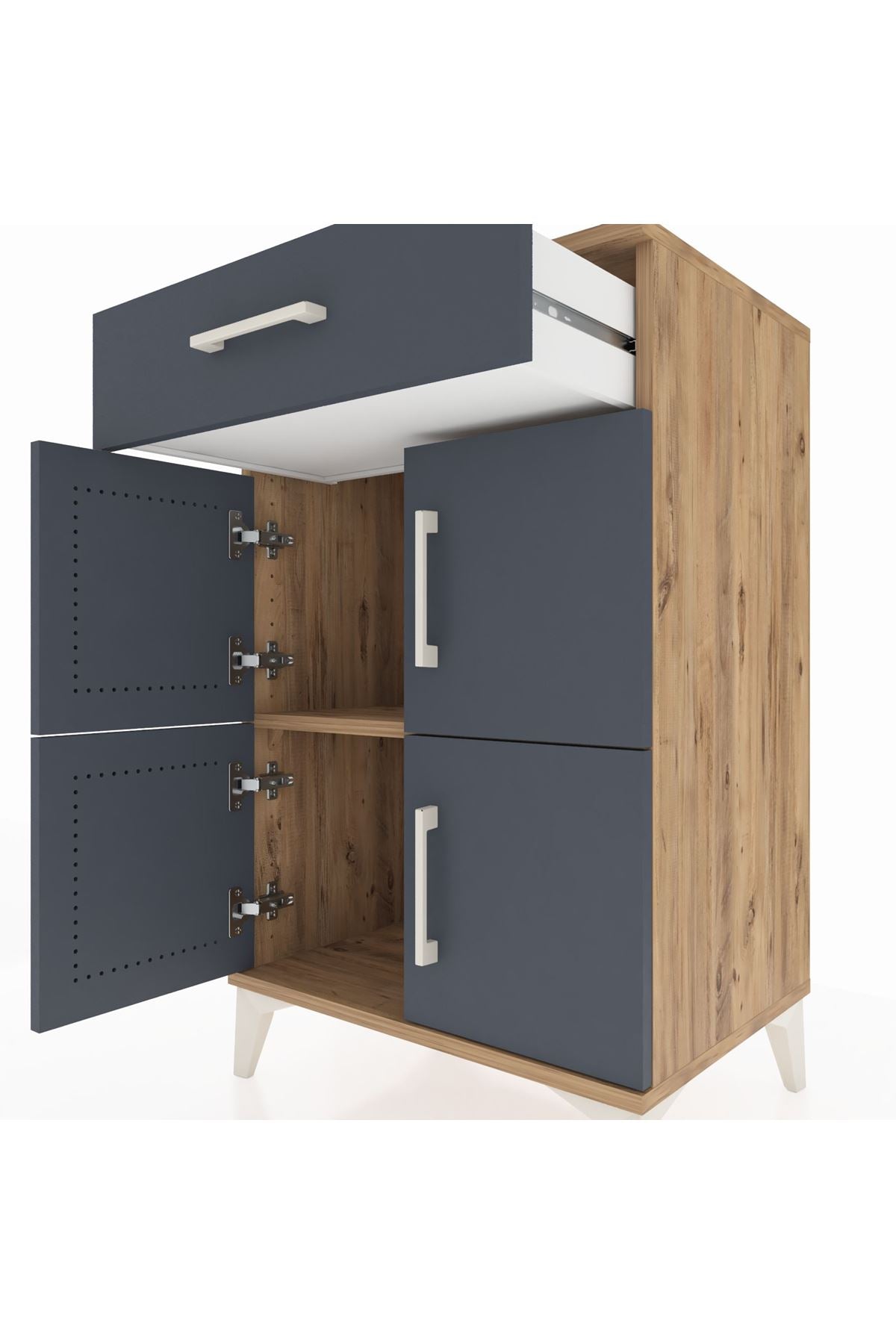 Hyperion Komodin Tek Raflı Tek Çekmeceli 4 Kapaklı 60x44x96 Çam-Antrasit