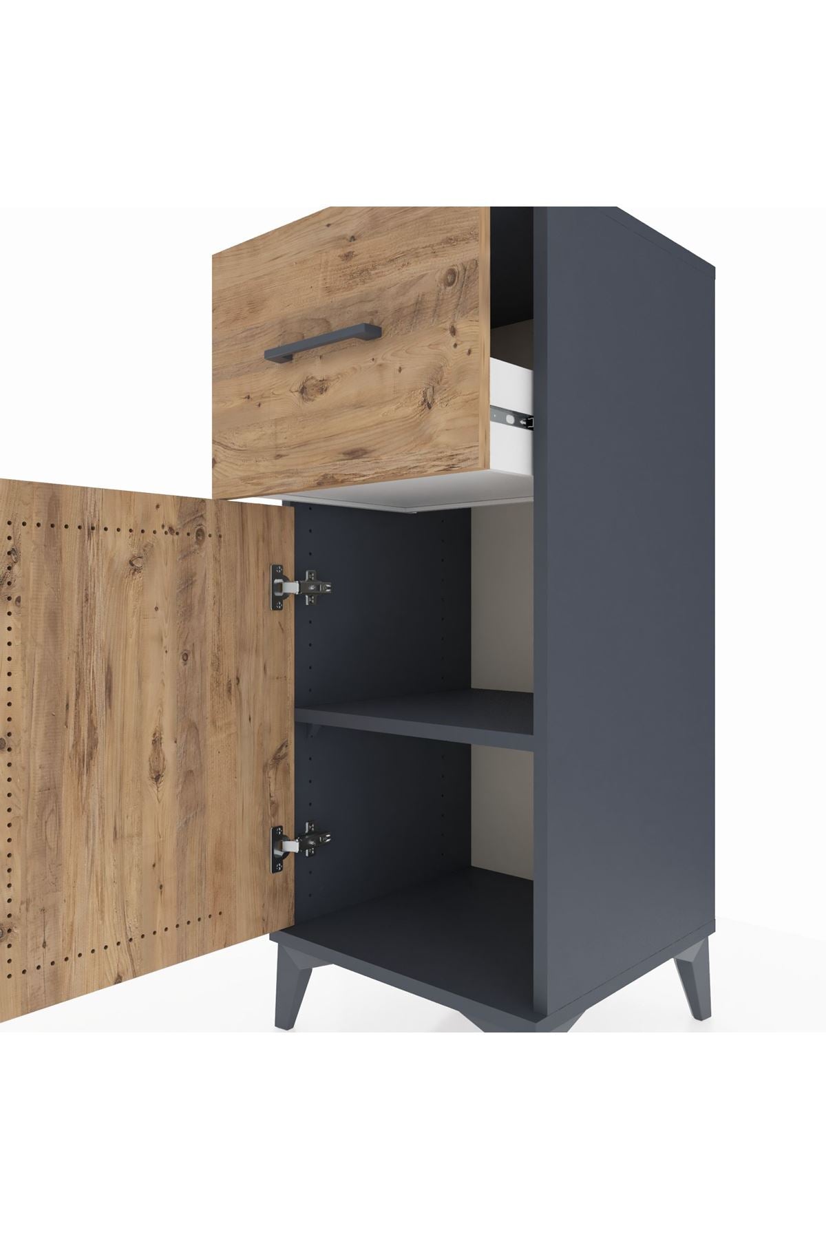 Hyperion Komodin Tek Raflı Tek Çekmeceli Tek Kapaklı 44x44x106 Antrasit-Çam