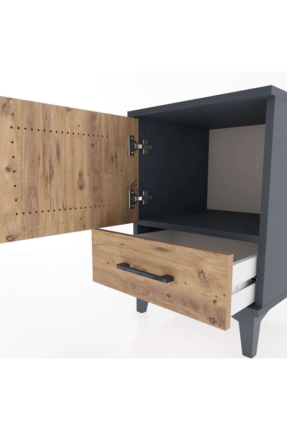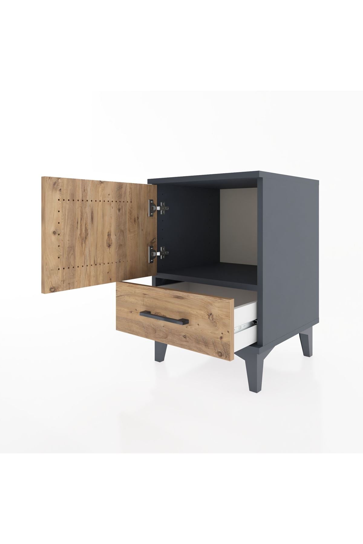 Hyperion Komodin Tek Raflı Tek Çekmeceli Tek Kapaklı 44x44x64 Antrasit-Çam